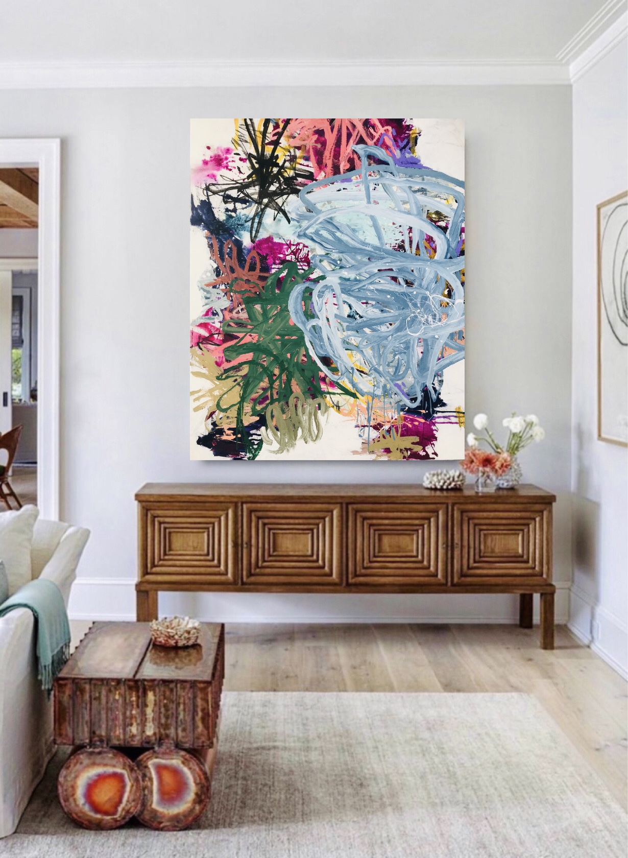 The work is directly influenced by Graffiti in City Laneways, Vintage Billboards and other weathered surfaces. The work is also inspired by my love of gestural abstraction and my obsession with using spray paint.