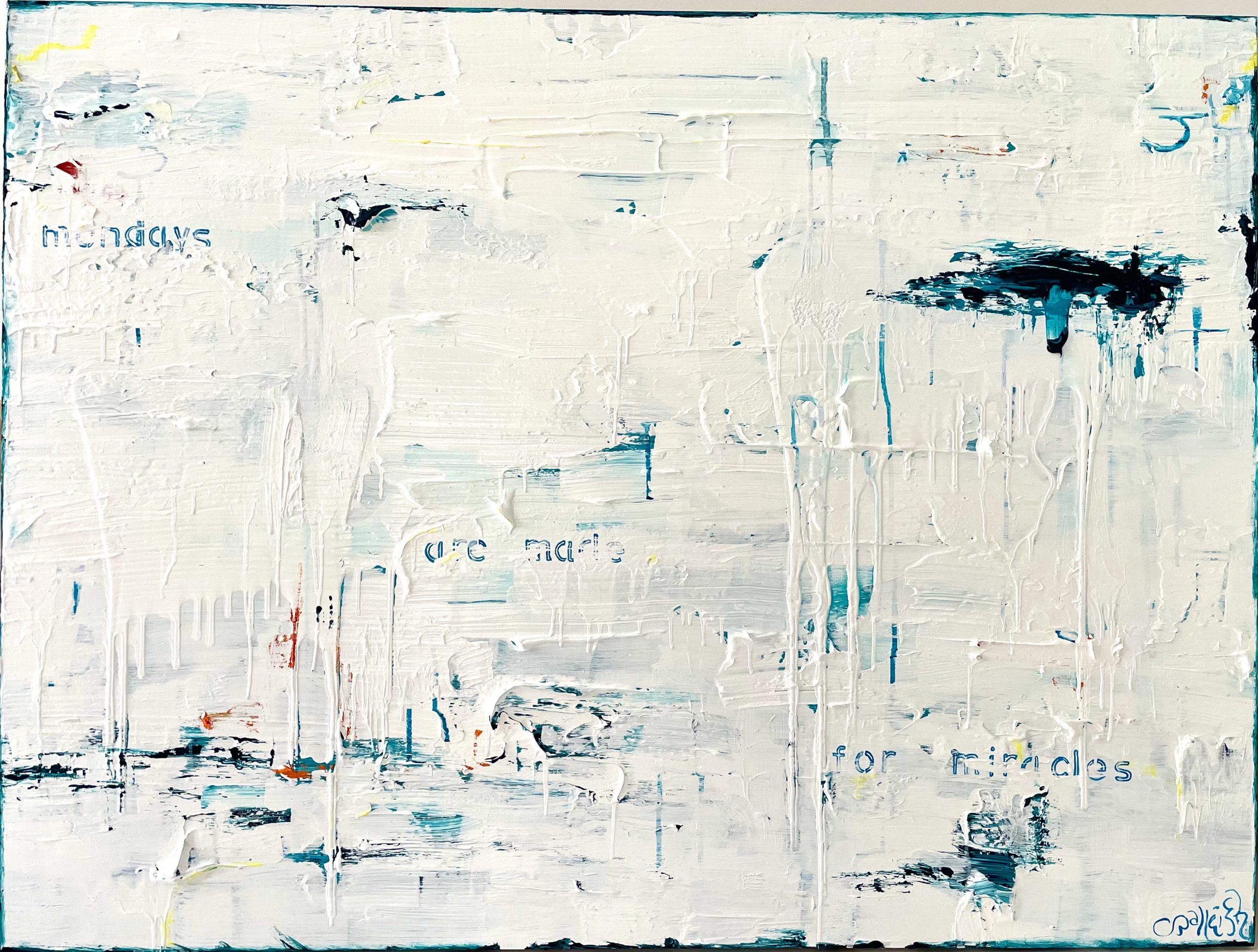 Mondays Are Made for Miracles by Salleigh Olsen – A statement original abstract piece of textures and layers and typography.
