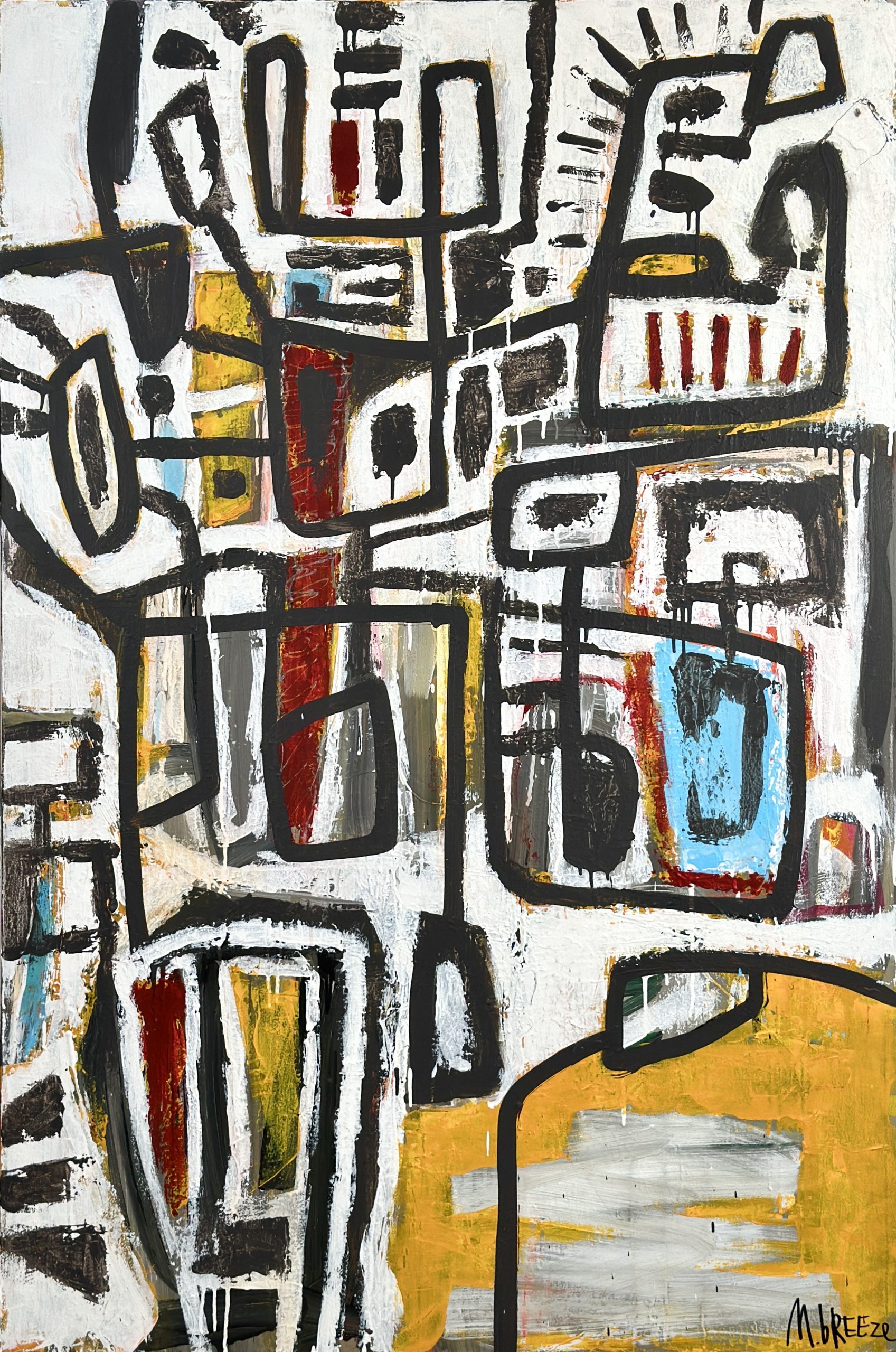 Mondrians Divorce adopts a simplistic palette where layers intertwine, creating highlights and depth to give this piece a sense of journey and movement.