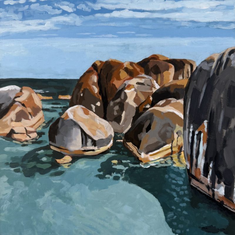 Montilla by Dinah Wakefield is inspired by the light, the colours and the natural beauty of the Noosa region of Australia. “What I love most about Noosa is the interplay of light. From the oceans to the clouds, to the river estuaries and the hinterland, this canvas unfolds before me every day and finds expression in my paintings”.