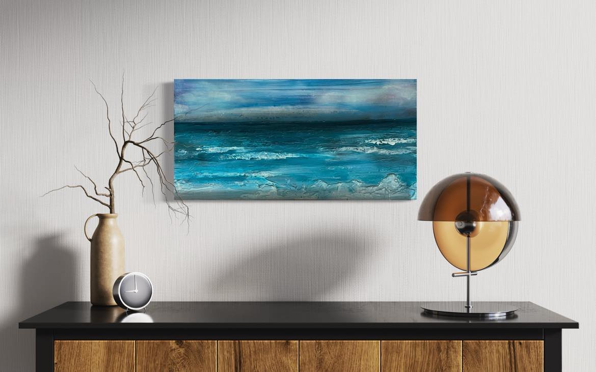 76 x38 cm (5cm deep) unframed. Acrylic on canvas. Ready to hang.