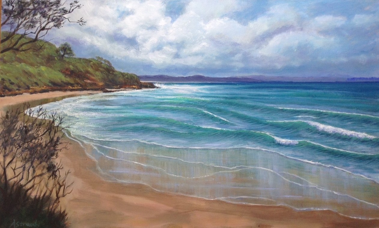 This seascape painting is inspired by one of my favourite beaches, Wategos Beach at Byron Bay.