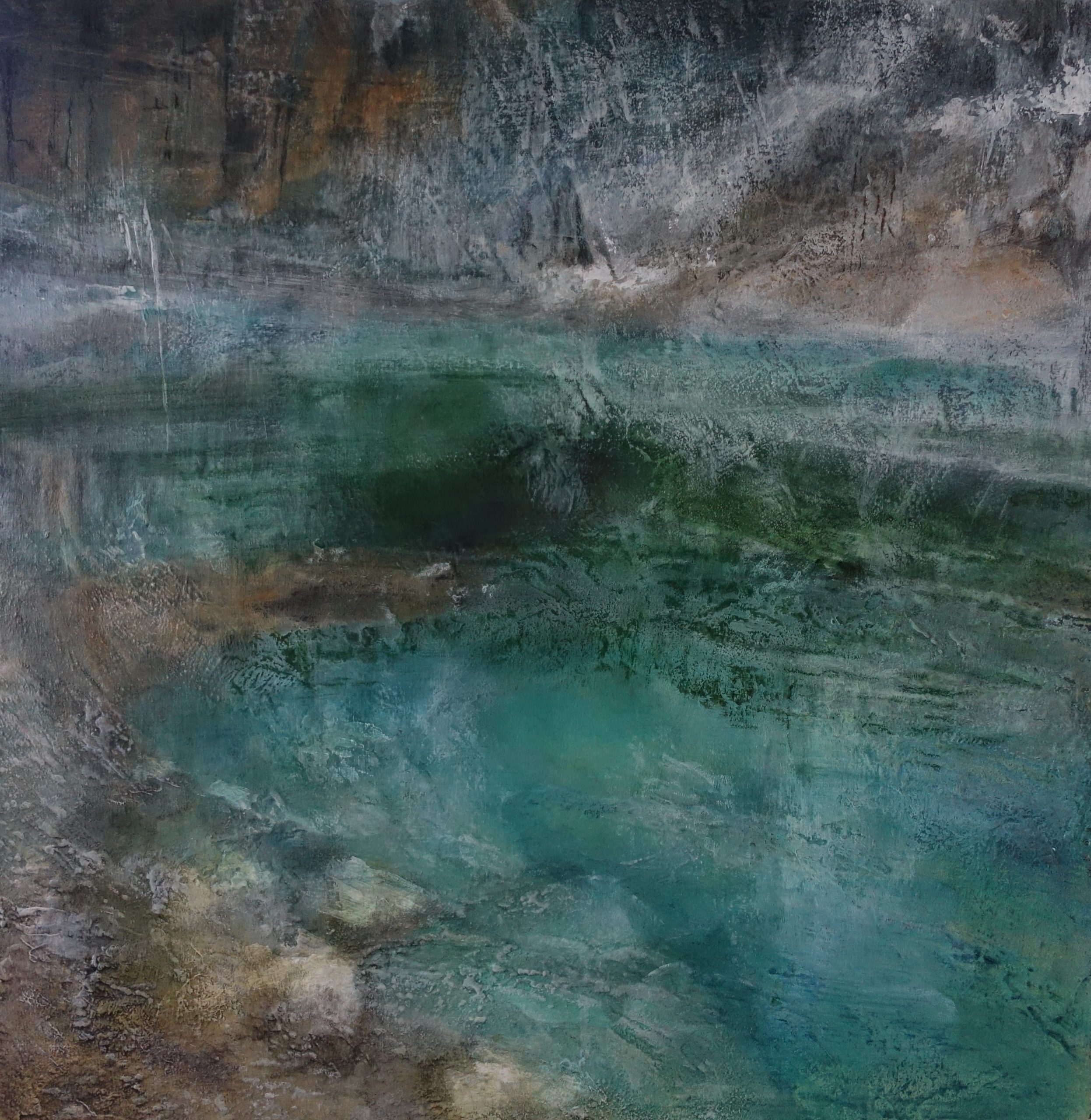 Original contemporary abstract seascape painting on linen canvas W 61 x H 61 x D 3.5 cm