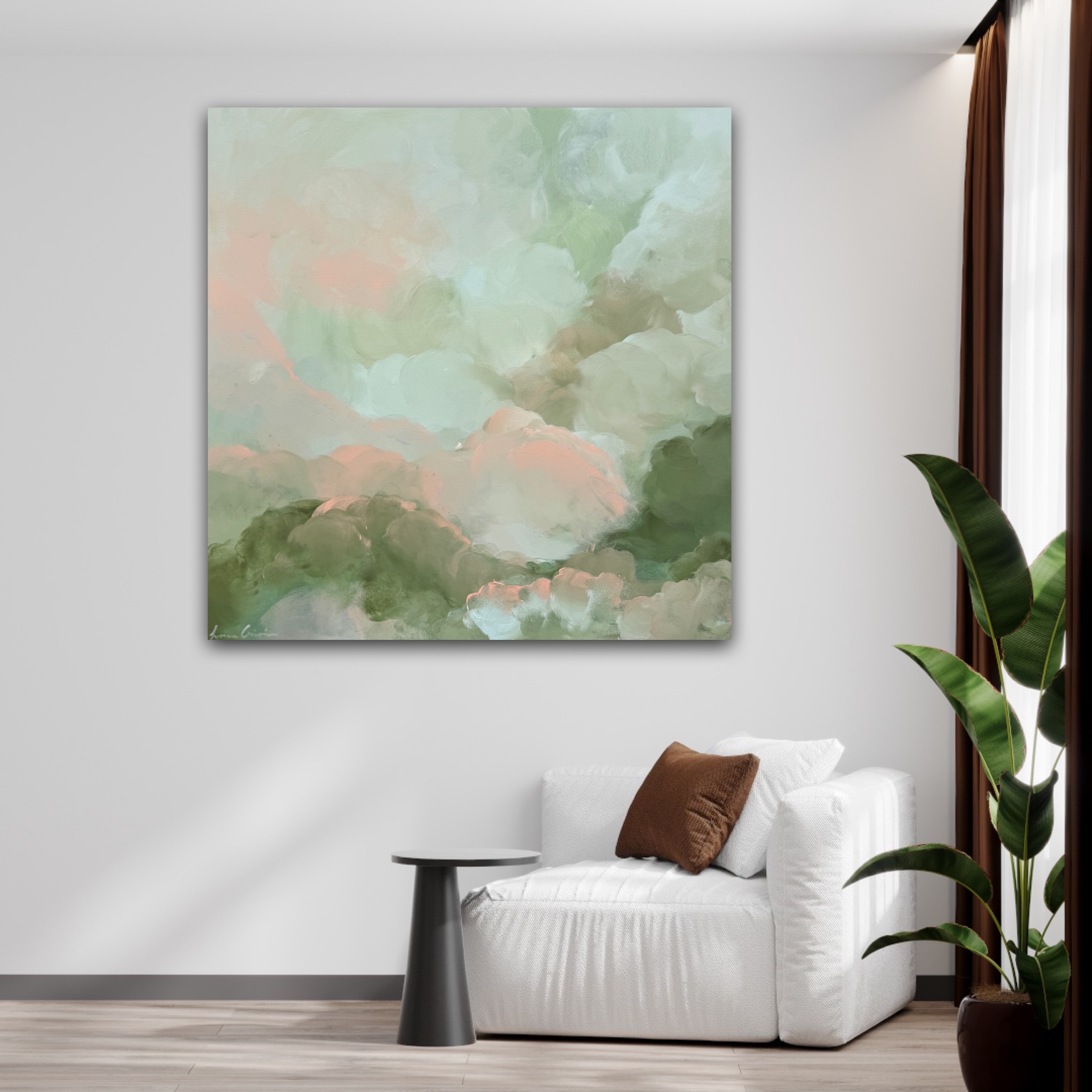 The delicate balance of warm and cool hues create a calming atmosphere, perfect for any modern or minimalist space. This artwork invites reflection and relaxation making it a statement piece for any living room, bedroom or office.