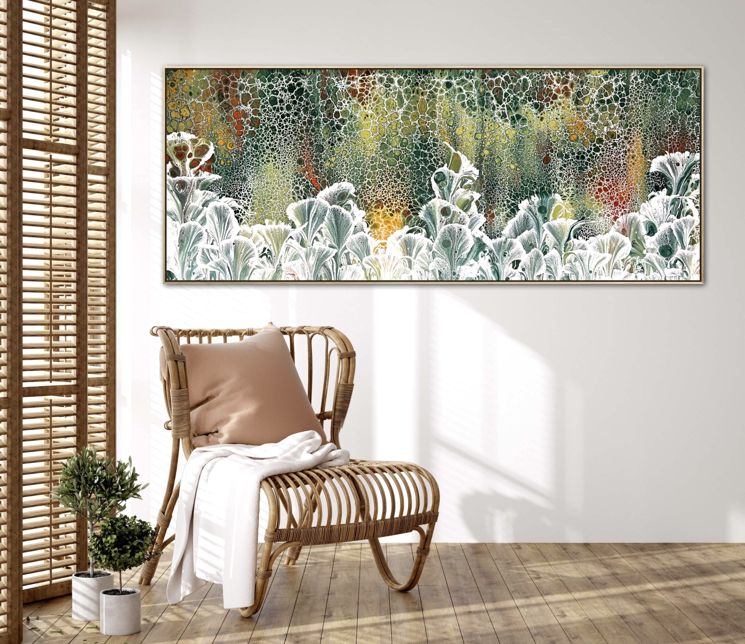 ‘In situ’ photos have been included to help with visualisation of the artwork in your home. In situ photos provided were created using the ArtStage app and may not be perfectly to scale. This being said, every effort has been made to represent the size of the art accurately but please read the dimensions of the artwork to ensure it fits your space perfectly. Where provided, photos of framed art are for illustrative purposes only.