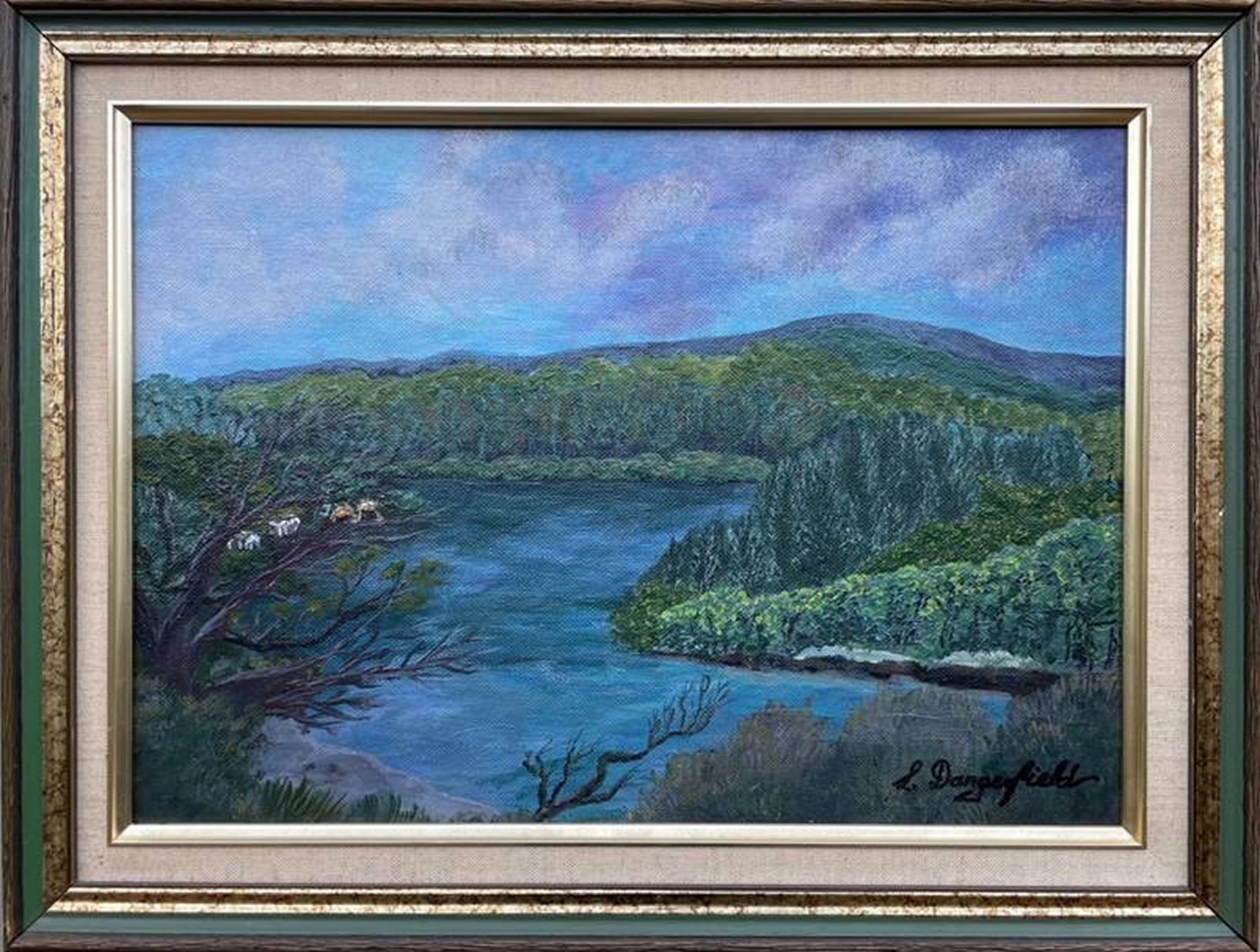 Mossy Point by Lisa Dangerfield – This is a painting in my “coastal series”. I decided to try doing a “plein air” painting and I managed to do most of it outside but I must admit I did resort to adding the detail in the comfort of my inside art space.