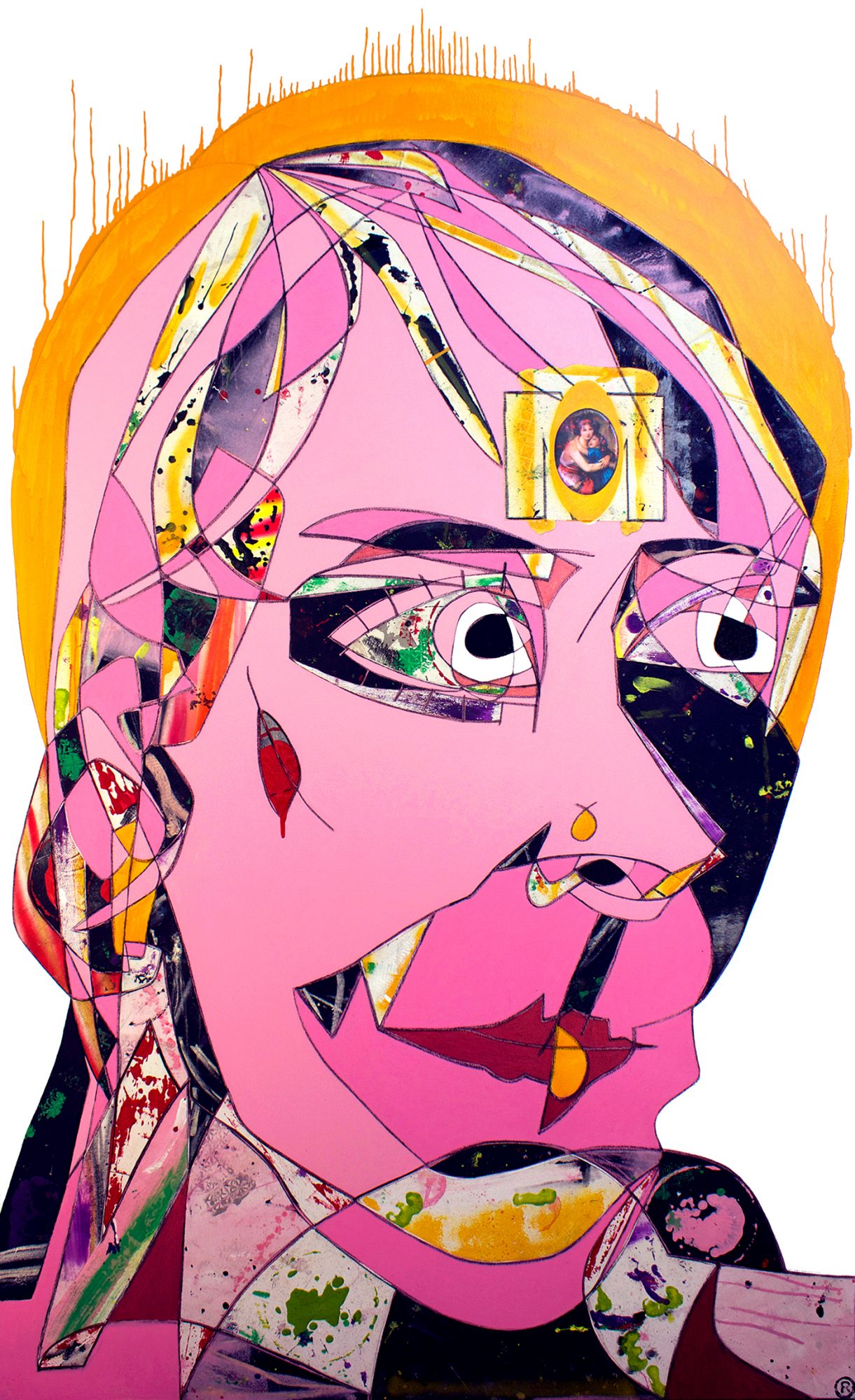 Acrylic spray enamel oil stick and collage on canvas