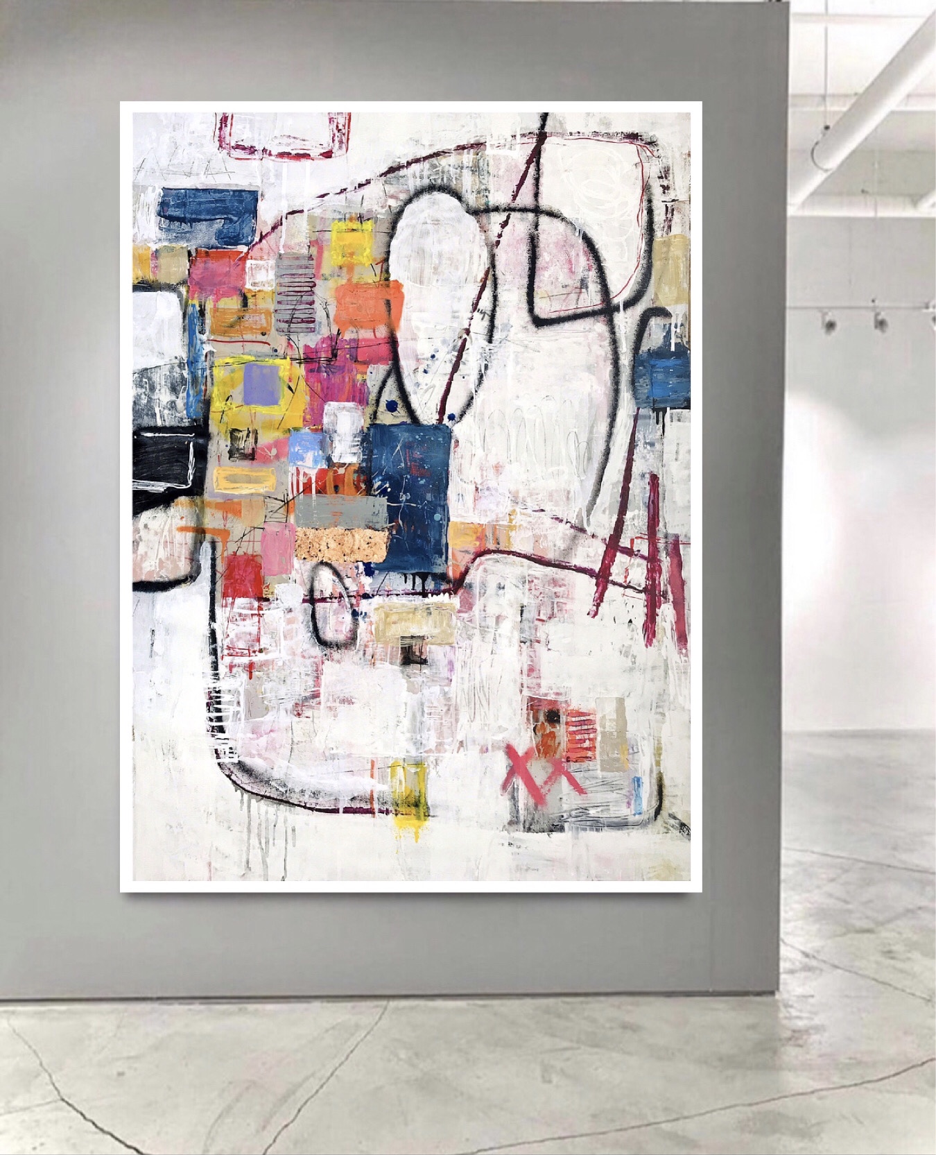 The Painting has a very textured finish created by built up layers, a visual effect mimicking the look you would see in the street where this effect is created over time on Graffiti Walls & Advertising Spaces. These imperfections are part of the overall look and feel of the finished work. Insitu examples are not to scale.