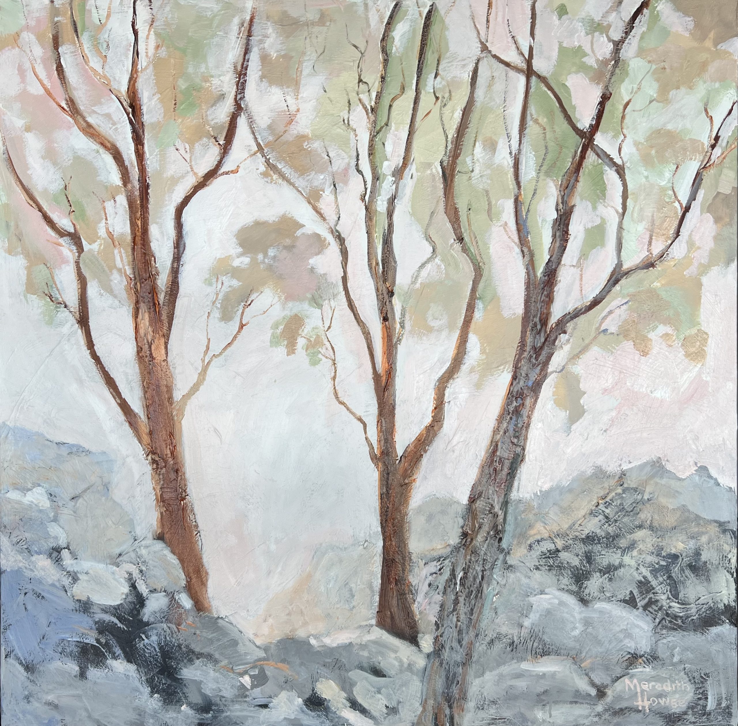 Light filled and textured, this original acrylic artwork is a semi-abstract style of painting with autumn/winter colours of the Victorian mountain country.