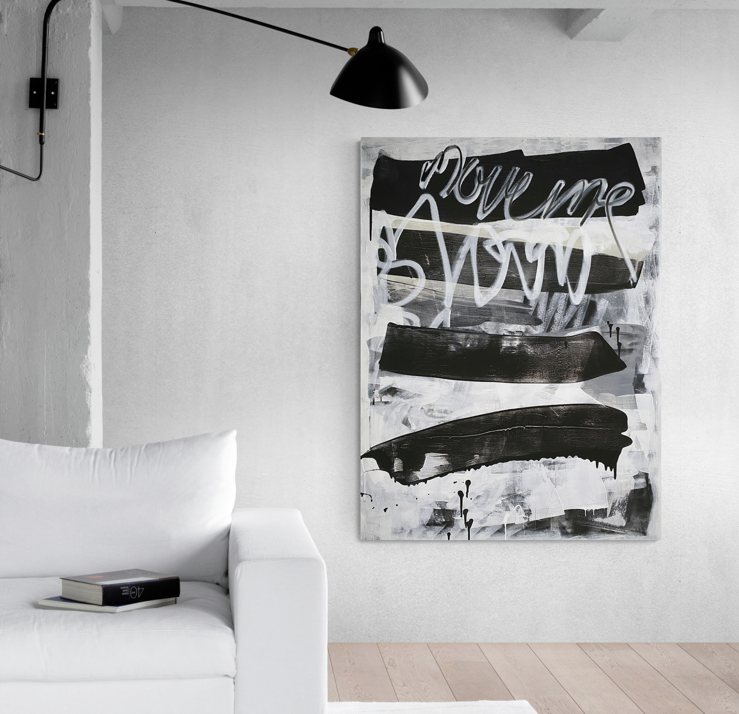 This original painting with it’s high contrast of black and white is the perfect statement piece for a large space. The palette also has hints if grey and off white to warm it up a tad. I loved painting this piece, it was a freeing and spontaneous work and I hope that energy comes across. …and yes, it might just have be influenced a little by listening to the artist Hozier. I hope you like it.