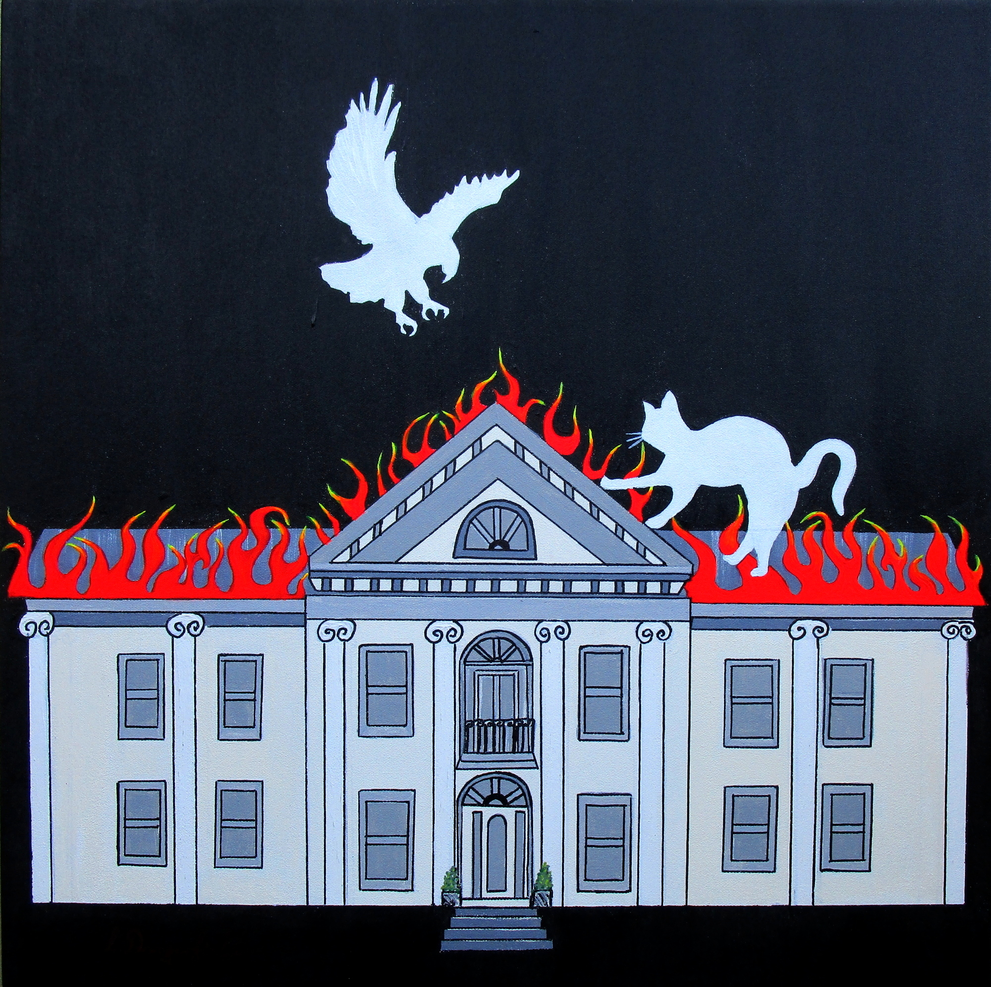 Movie Title – Cat On A Hot Tin Roof by Lisa Dangerfield – This is another painting in my “Movie Title” inspired series. This body of work includes my quirky depictions of movie titles. I’ve been working and developing this idea for quite a while and have successfully converted my ideas to images on canvas.