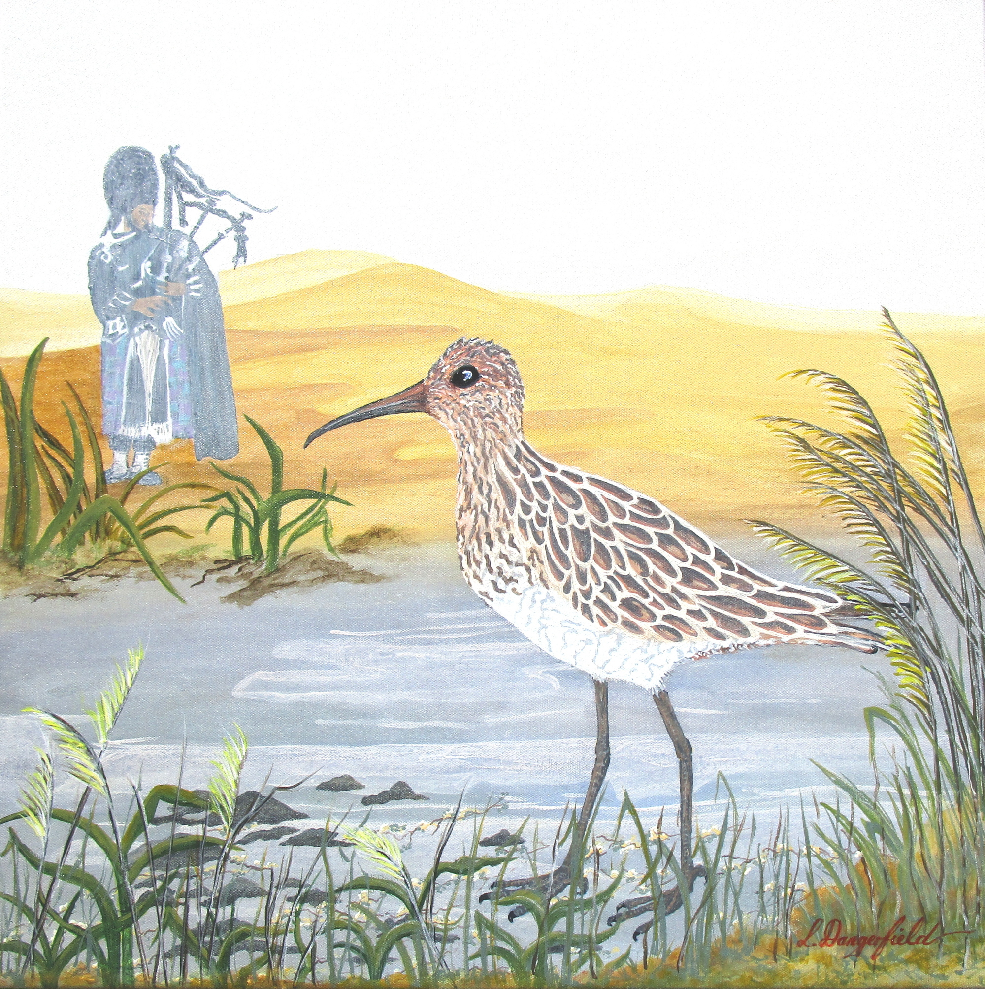 On this occasion I have done a lanscape/beach background. I then added a sandpiper bird and a Scottish piper in the sand dunes, my quirky “sandpipers”. I am absolutely thrilled with it! I hope this painting brightens up your life as much it did mine in making it!