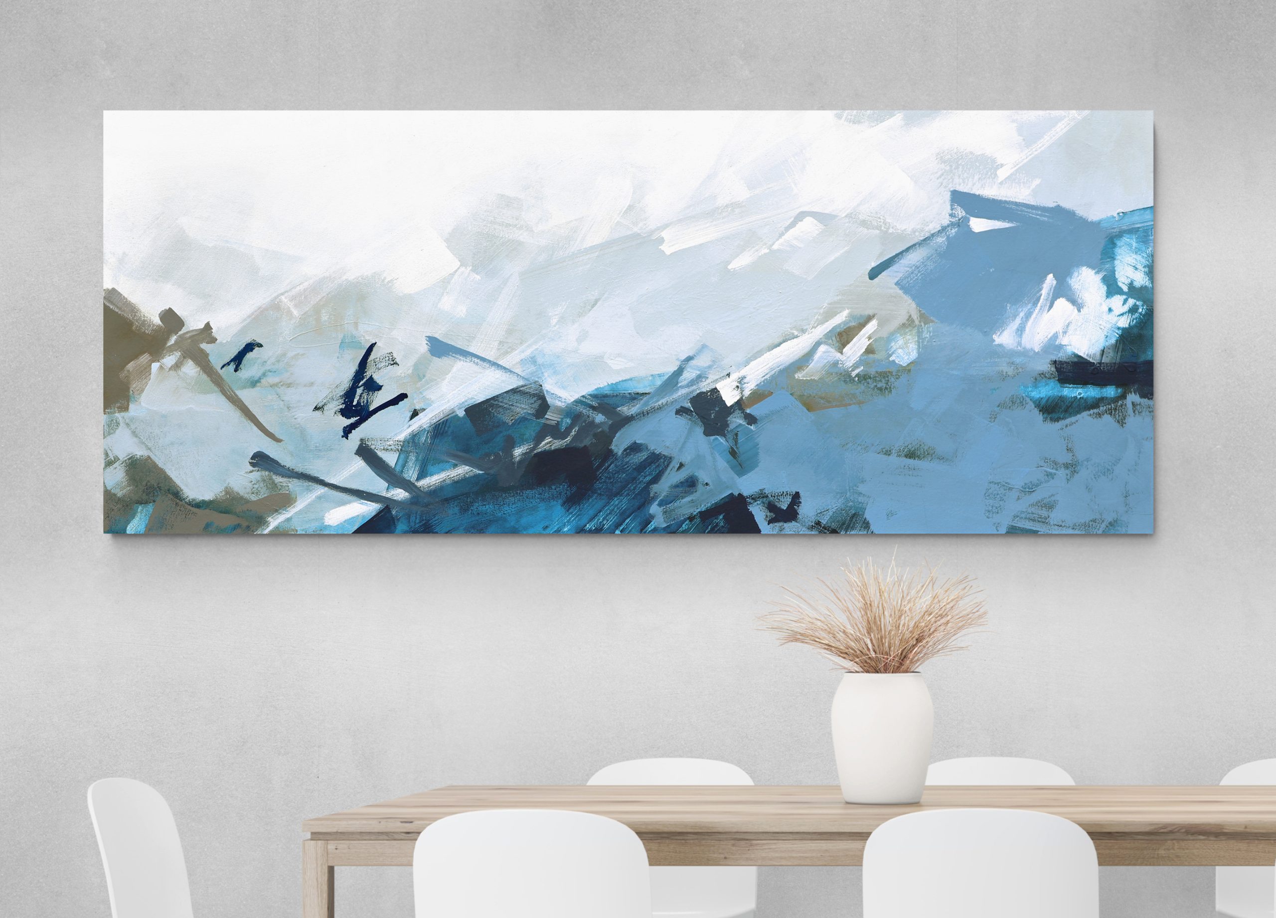 Moving Through is painted on a quality stretched canvas with painted 3.8cm sides so it’s ready to hang.