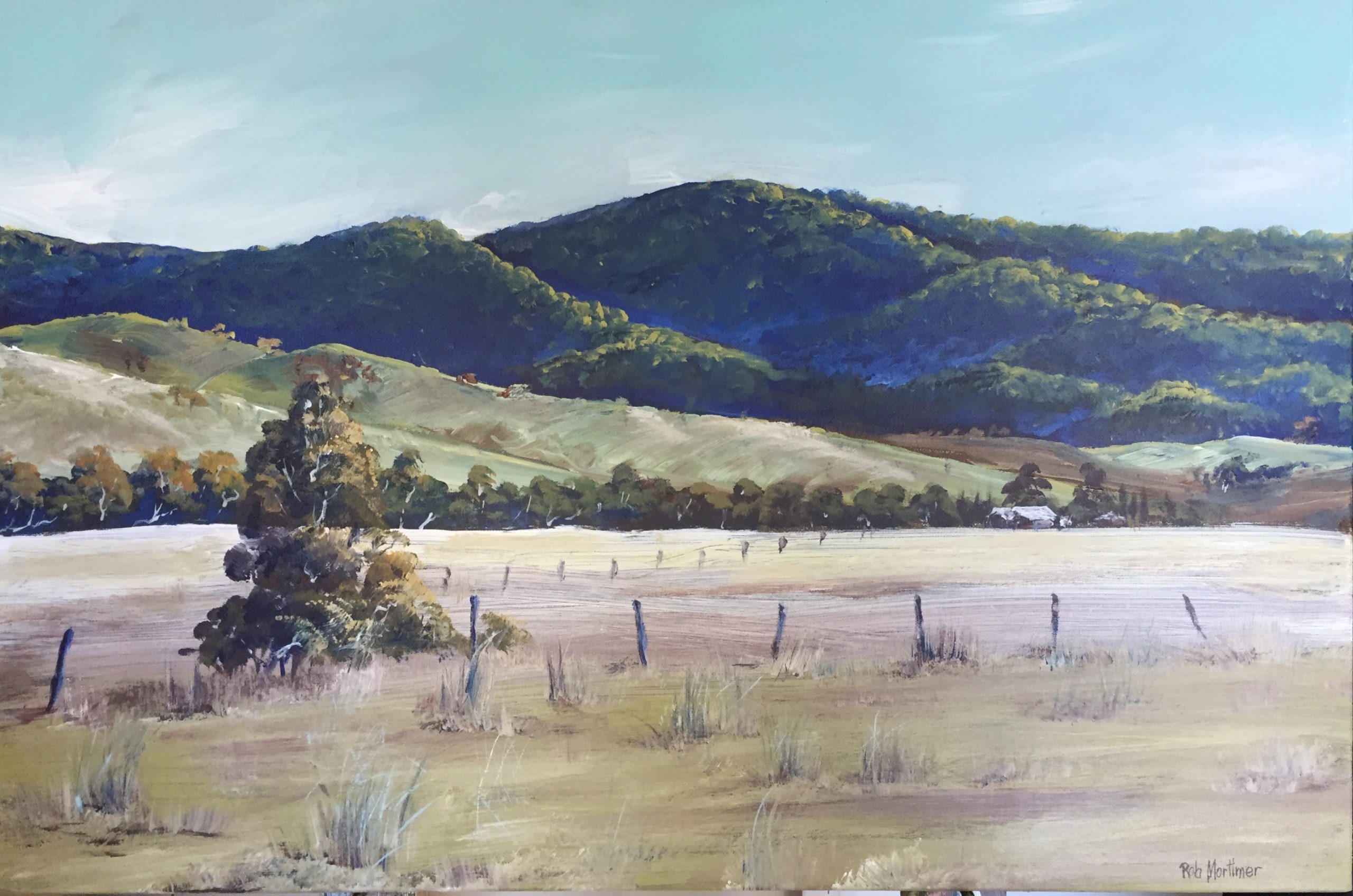 Mt Kilcoy region by Robert Mortimer – Original, Acrylic on quality stretched canvas, clear coated. With wire and hooks and felt pads at back.