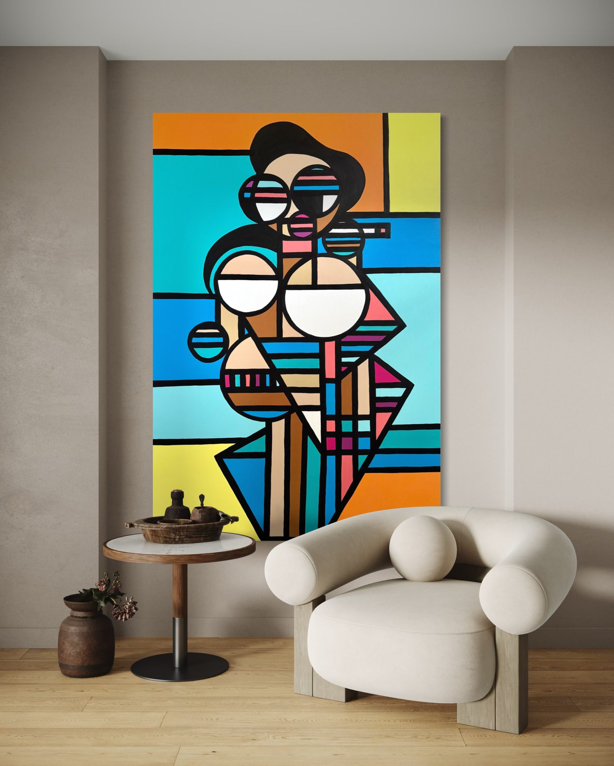 The artwork draws the viewer’s attention through a composition of vivid colour, shapes and bold lines.