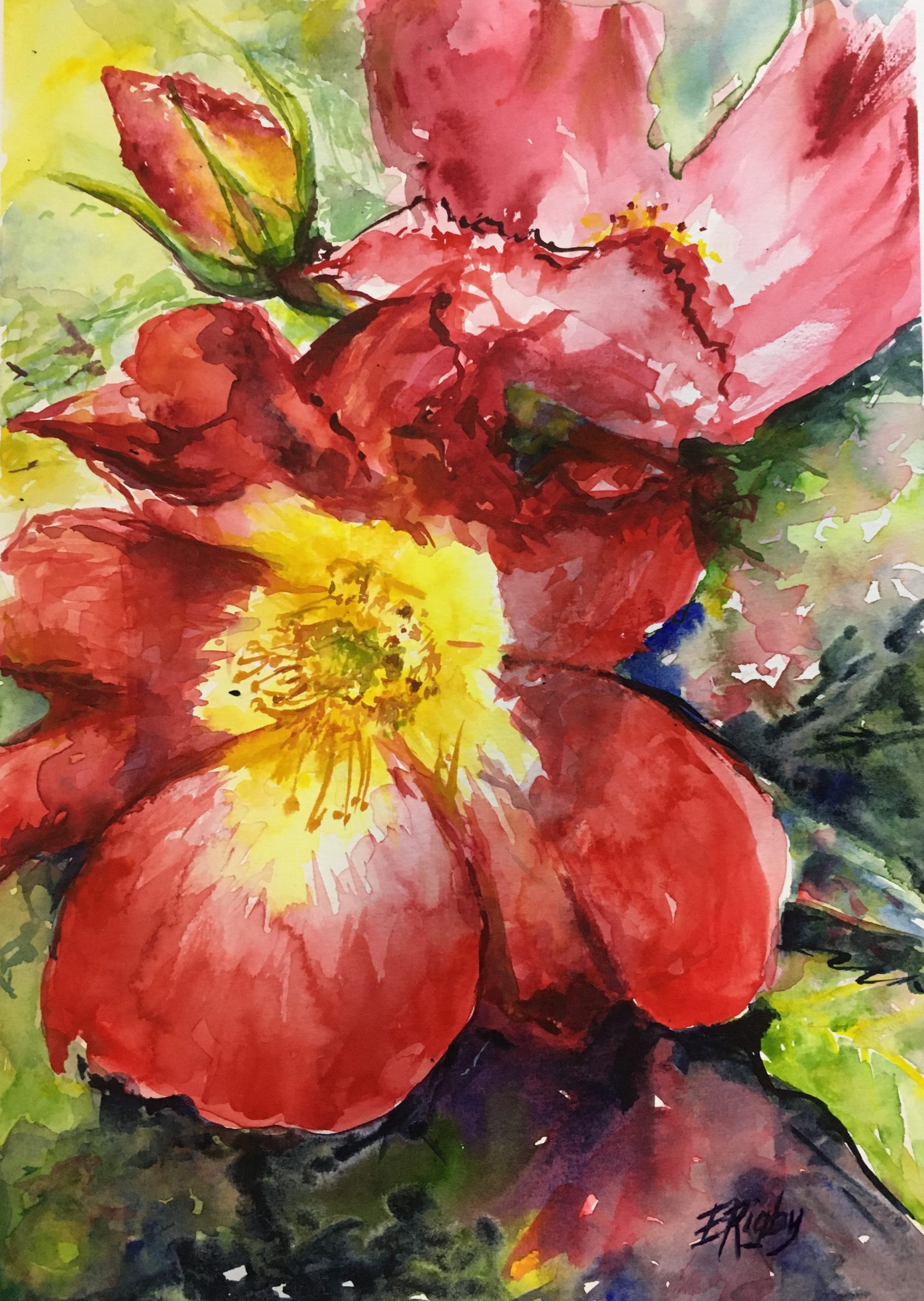 My Love is Like a Red, Red Rose by Eileen Rigby – Inspired by a breathtaking garden of roses during one of our liberating holidays that, after the COVID times we have been through, seems even more special that it was at the time. I am drawn towards bright colours and hope you are too! This is an original watercolour, using only Winsor and Newton paints on 300gsm acid free paper.