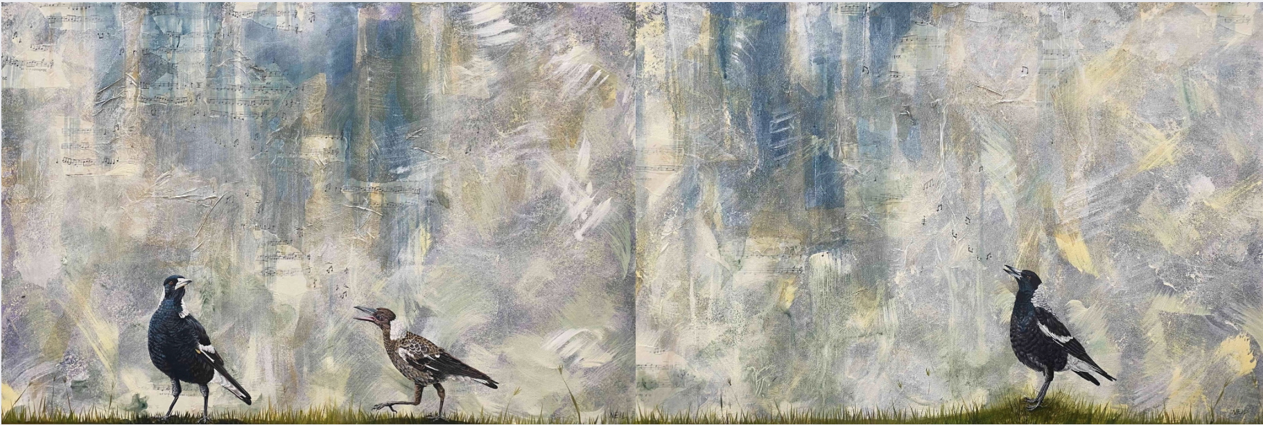 This is a diptych, each painting is 91 x 61cm. Total size is 182 x 61cm.