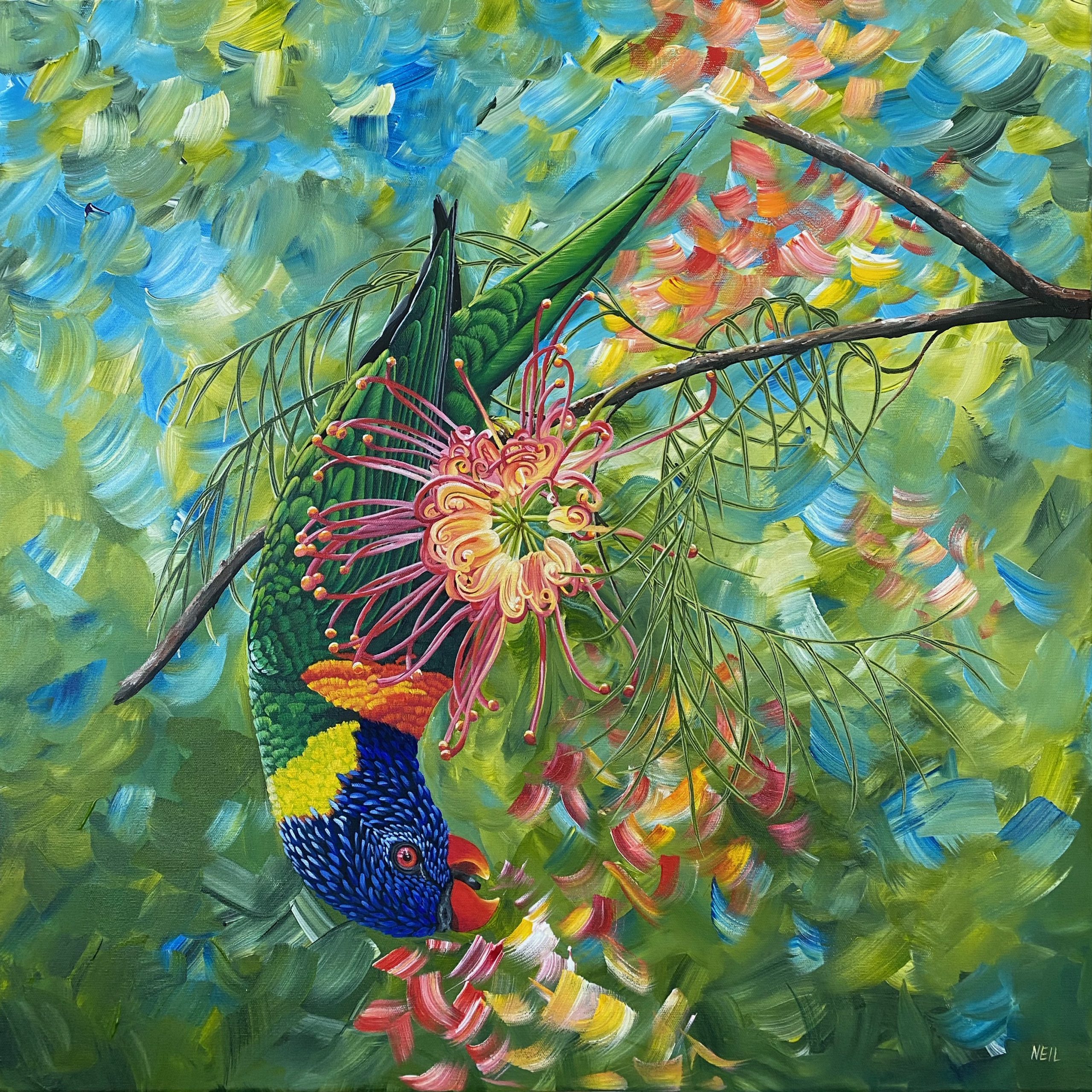 It is such a privilege to be surrounded by the bush and the birds. In the garden outside my art studio, there are some beautiful grevilleas. The lorikeets absolutely love them and are often our alarm clock in the morning. They don’t exactly have the nicest song, but I still love to hear them everyday.