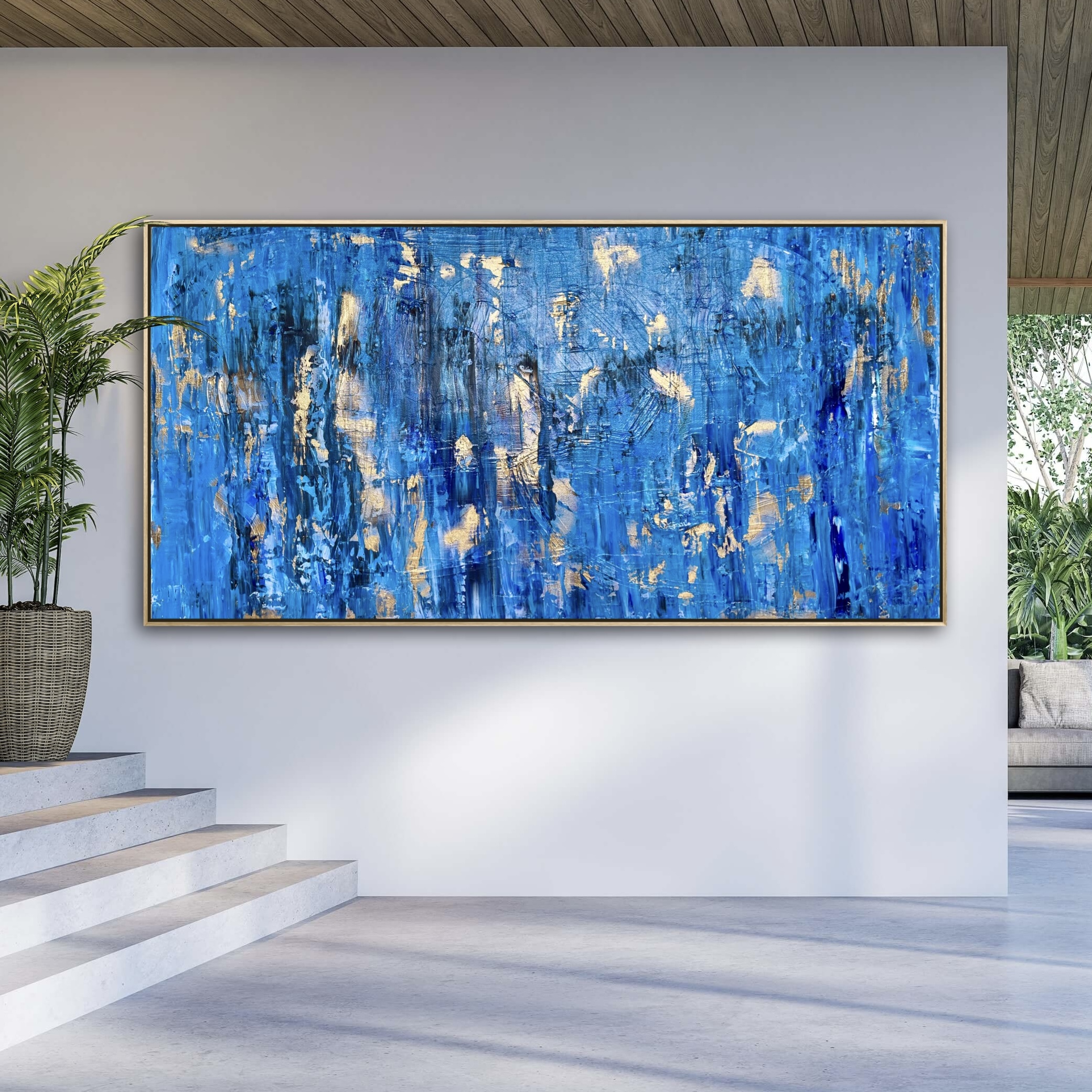 This style of painting has been creating by adding and removing layers of paint with a palette knife. The painting changes depending on where the light is coming from and how much light is picking up the pale gold. The surface of the painting is heavily textured.