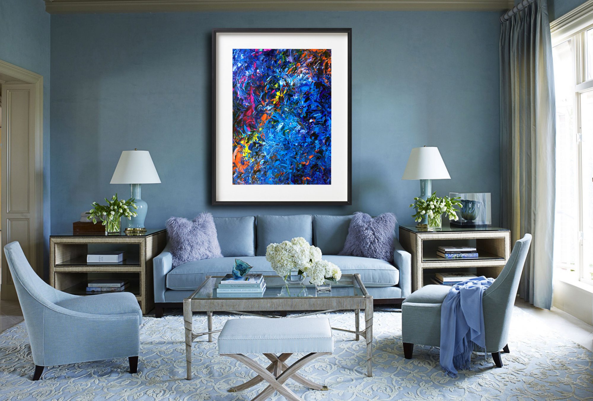 This work is UNFRAMED and was painted on Hahnemühle Etching Paper 300gsm Warm White, with dimensions 78 × 110 × 0.3 cm (unframed). The frame is NOT included and is just for illustrative purposes.