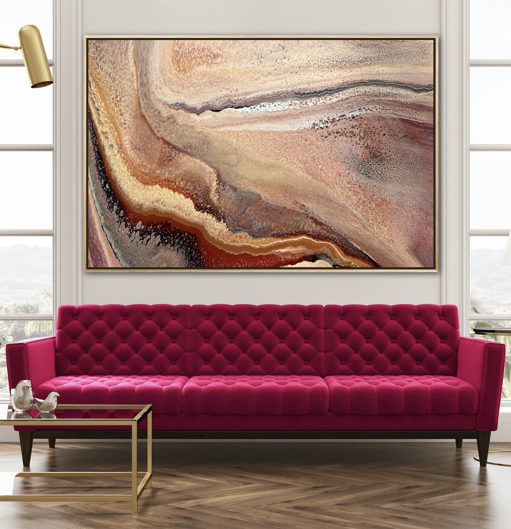 Natural Blush was created using various techniques combined to allow increased flow, interaction and separation of colours to create interesting patterns where pops of colour can be seen emerging from underneath. This added dimension adds lace and cells to the artwork creating an interesting and one of a kind painting that can never be replicated. A lovely variety acrylic pigments were used including metallic yellow & rose gold, bronze, silver, grey, tan, copper, burgundy, pink, browns, yellow, cream, black and white.