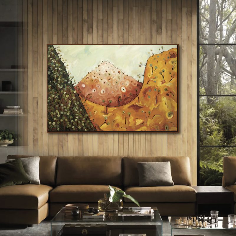 ‘In situ’ photos have been included to help with visualisation of the artwork in your home. In situ photos provided were created using the ArtStage app and may not be perfectly to scale. This being said, every effort has been made to represent the size of the art accurately but please read the dimensions of the artwork to ensure it fits your space perfectly. Where provided, photos of framed art are for illustrative purposes only.