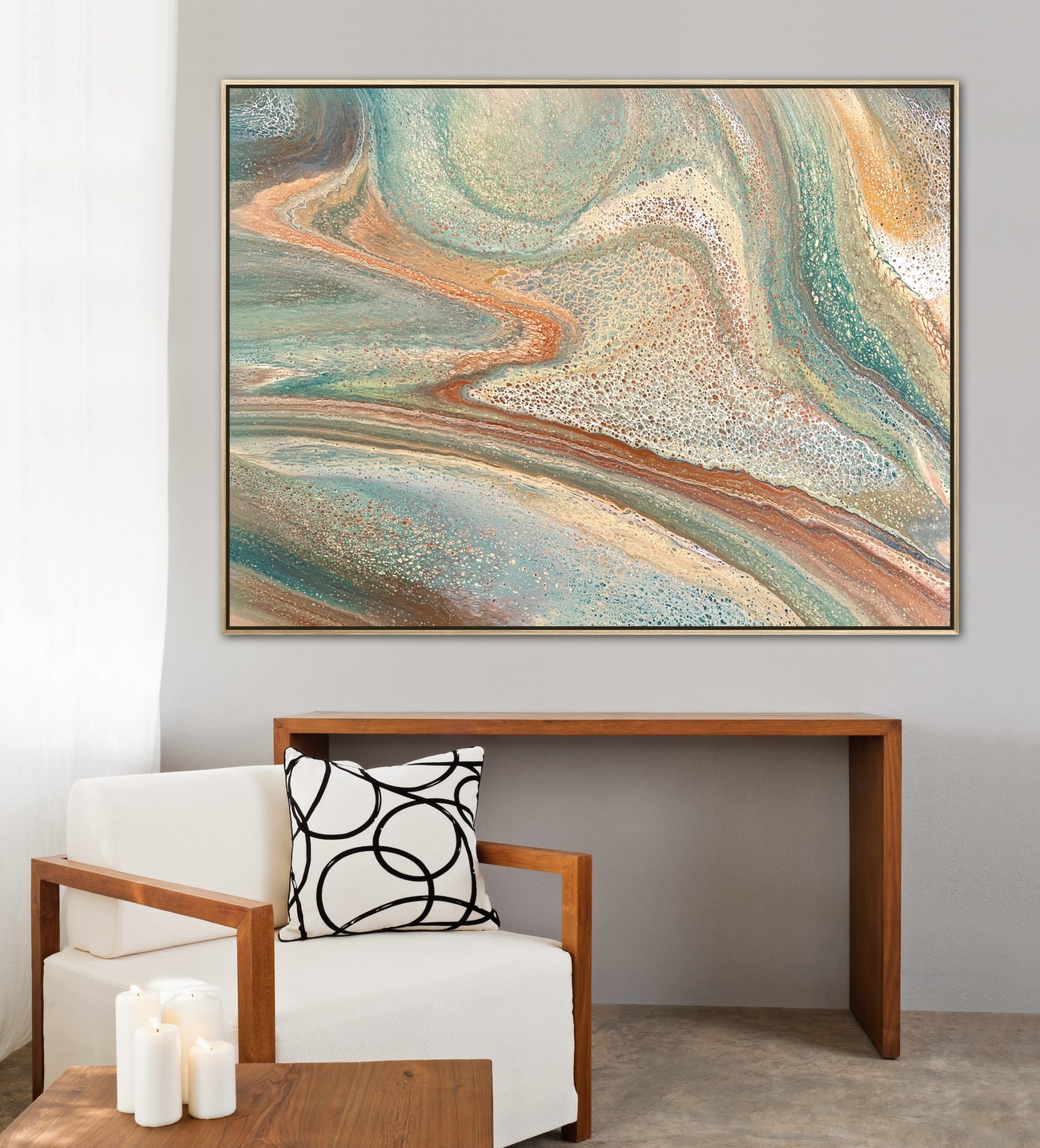 ‘In situ’ photos have been included to help with visualisation of the artwork in your home. In situ photos provided were created using the ArtStage app and may not be perfectly to scale. This being said, every effort has been made to represent the size of the art accurately but please read the dimensions of the artwork to ensure it fits your space perfectly. Where provided, photos of framed art are for illustrative purposes only.