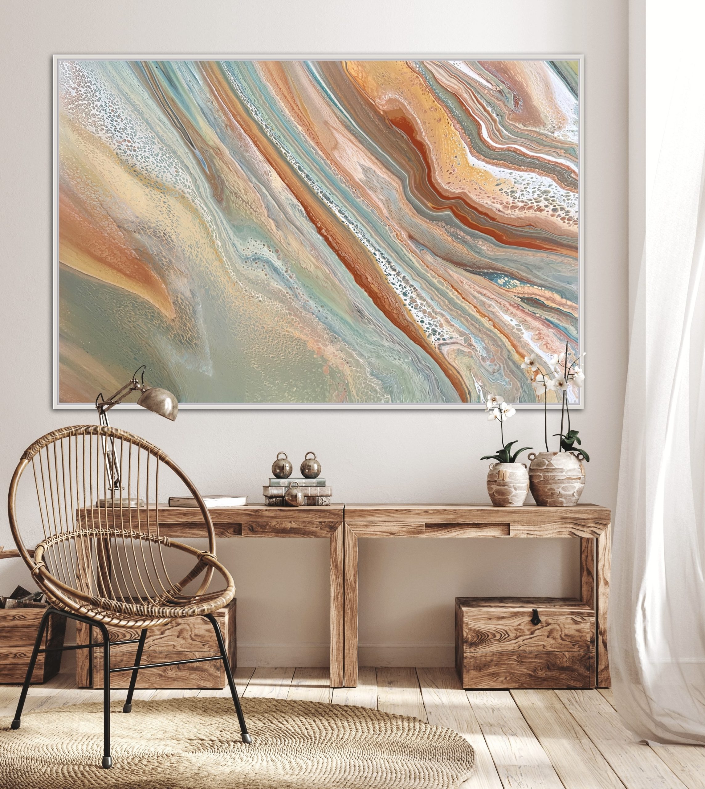 Nature Unfolds- original artwork by Angela Roskell – a unique, eye-catching multidirectional extra large abstract acrylic painting stretched and ready to hang.