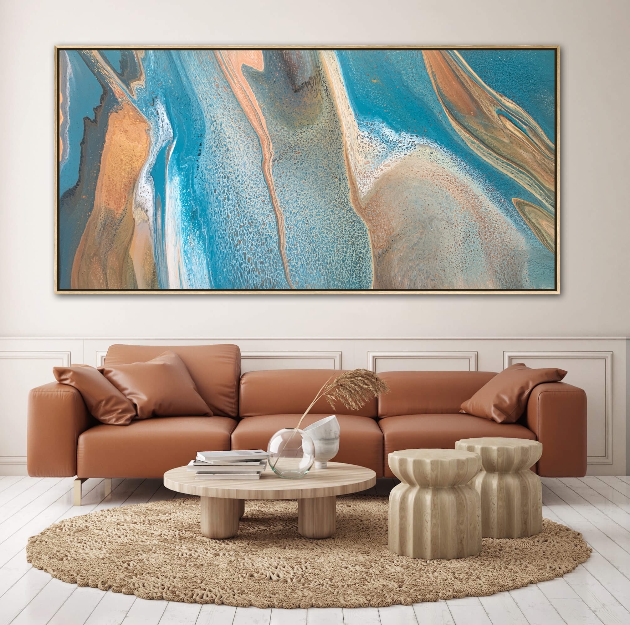 ‘In situ’ photos have been included to help with visualisation of the artwork in your home. In situ photos provided were created using the ArtStage app and may not be perfectly to scale. This being said, every effort has been made to represent the size of the art accurately but please read the dimensions of the artwork to ensure it fits your space perfectly. Where provided, photos of framed art are for illustrative purposes only.