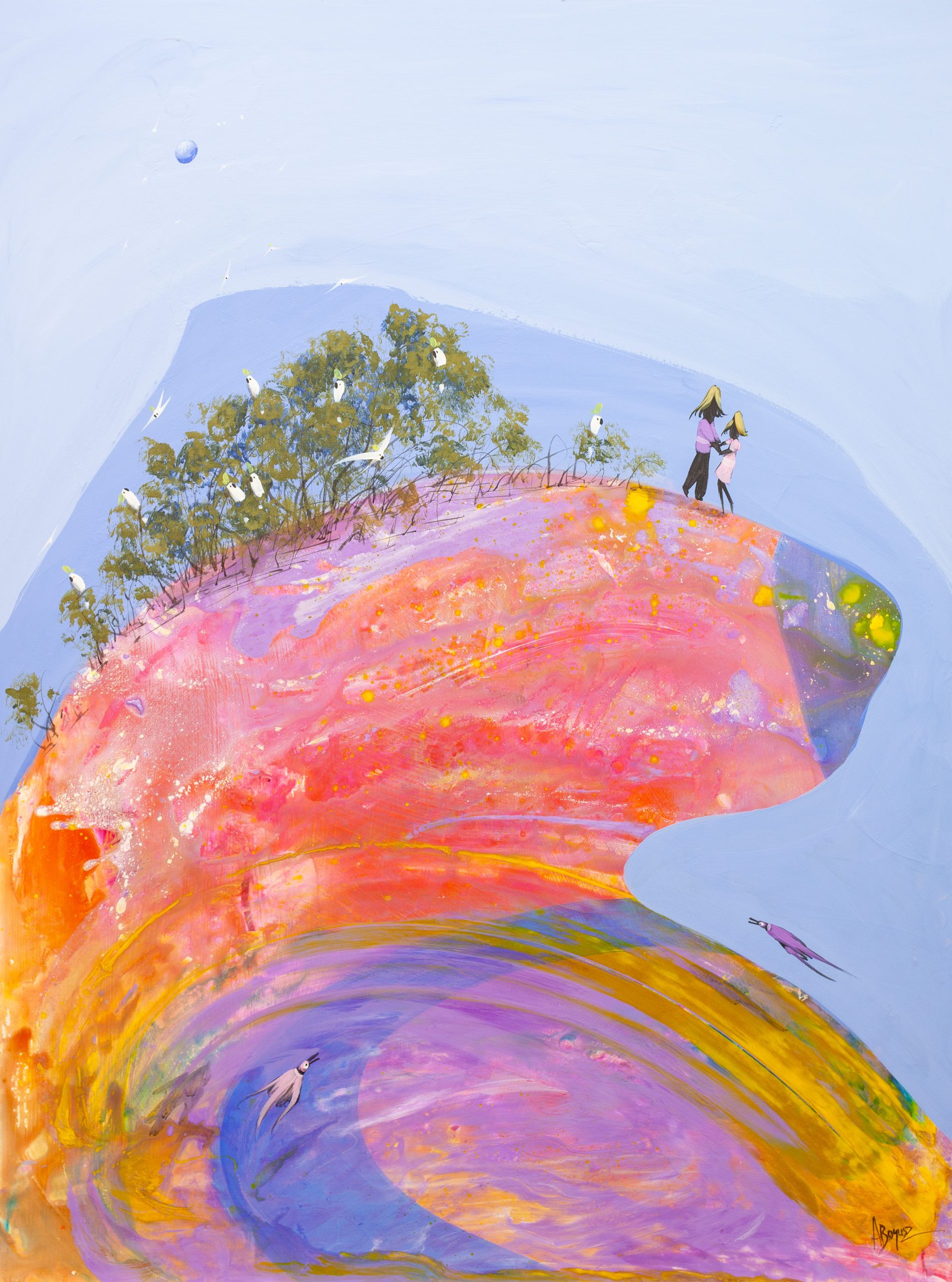 My paintings draw inspiration from a broad range of sources. I’m interested in the mystery of our existence, my family, which includes two children, and the stories that life inevitably throws our way.Â