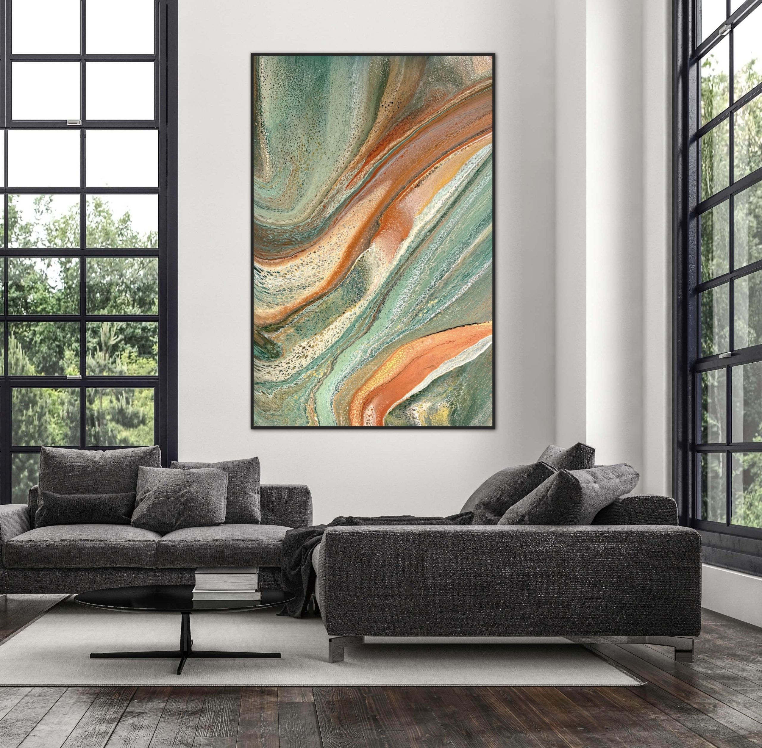 ‘In situ’ photos have been included to help with visualisation of the artwork in your home. In situ photos provided were created using the ArtStage app and may not be perfectly to scale. This being said, every effort has been made to represent the size of the art accurately but please read the dimensions of the artwork to ensure it fits your space perfectly. Where provided, photos of framed art are for illustrative purposes only.