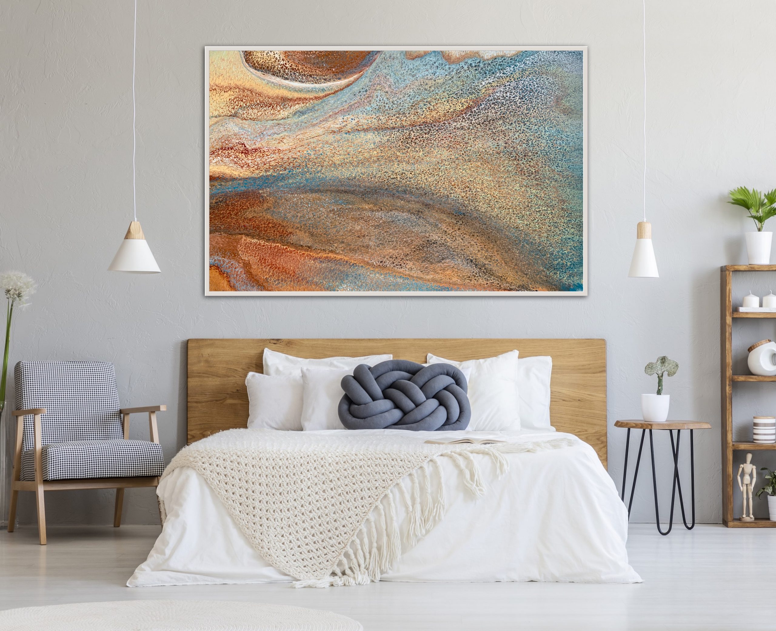 ‘In situ’ photos have been included to help with visualisation of the artwork in your home. In situ photos provided were created using the ArtStage app and may not be perfectly to scale. This being said, every effort has been made to represent the size of the art accurately but please read the dimensions of the artwork to ensure it fits your space perfectly. Where provided, photos of framed art are for illustrative purposes only.