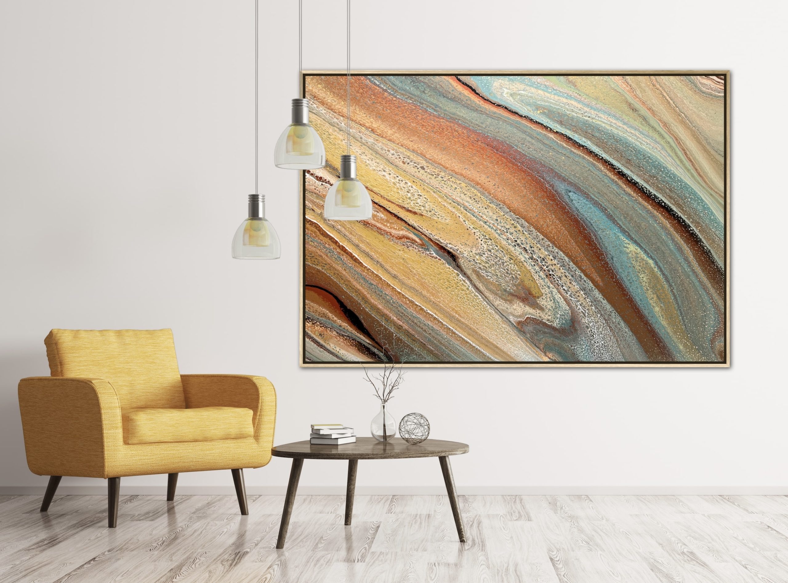 ‘In situ’ photos have been included to help with visualisation of the artwork in your home. In situ photos provided were created using the ArtStage app and may not be perfectly to scale. This being said, every effort has been made to represent the size of the art accurately but please read the dimensions of the artwork to ensure it fits your space perfectly. Where provided, photos of framed art are for illustrative purposes only.