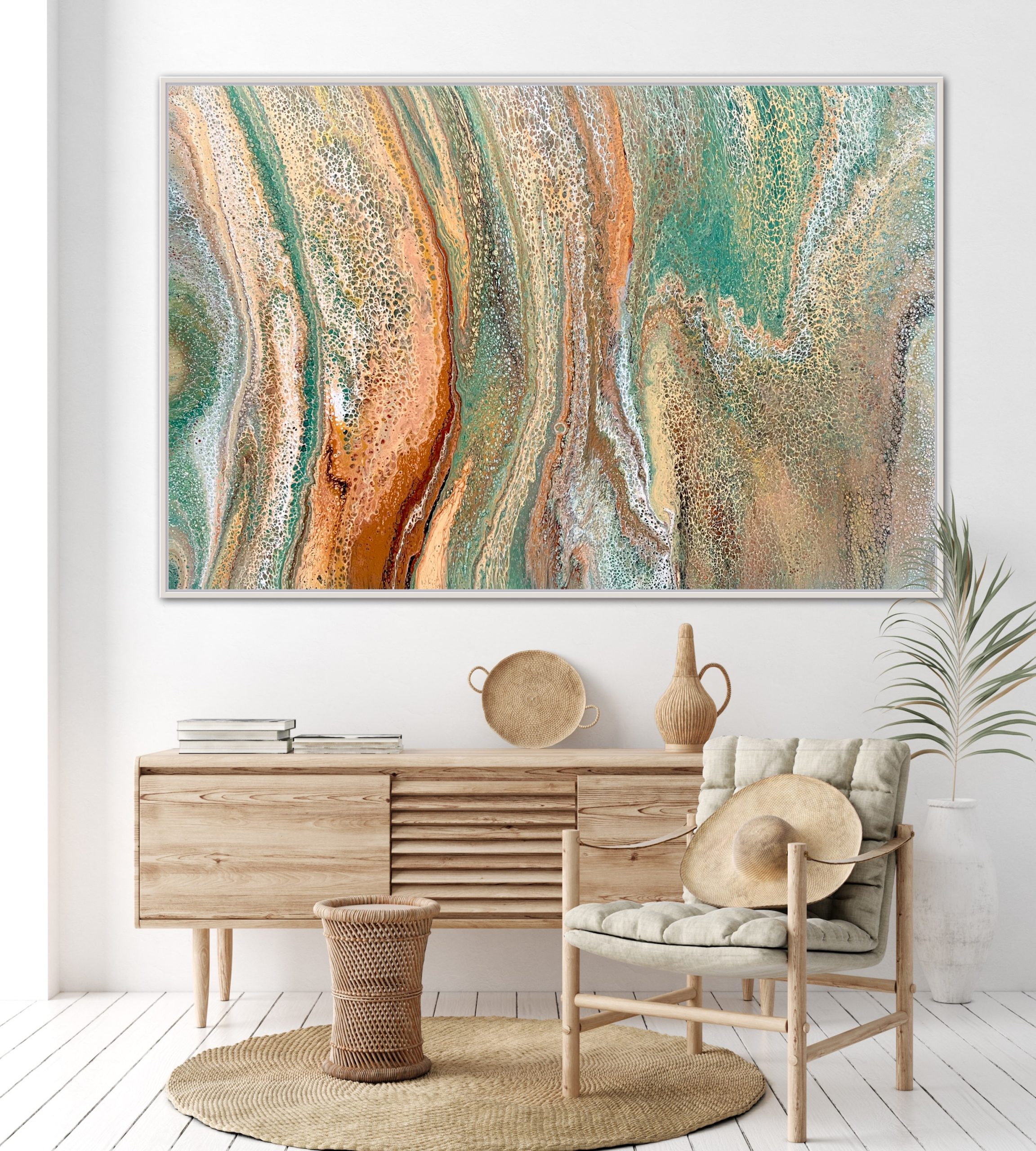 ‘In situ’ photos have been included to help with visualisation of the artwork in your home. In situ photos provided were created using the ArtStage app and may not be perfectly to scale. This being said, every effort has been made to represent the size of the art accurately but please read the dimensions of the artwork to ensure it fits your space perfectly. Where provided, photos of framed art are for illustrative purposes only.