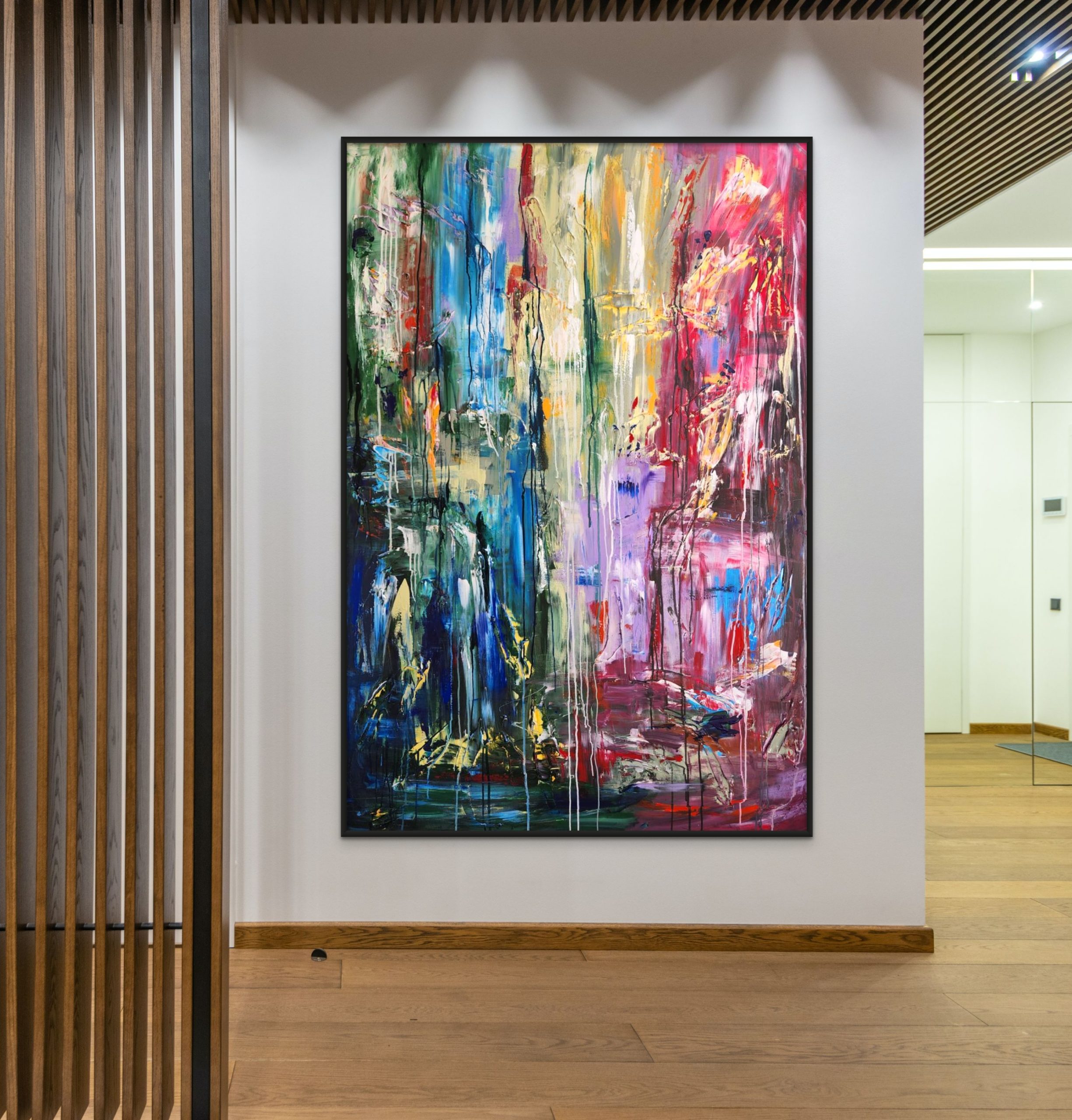 This beautiful modern piece is made with lots of layers of texture and drips of acrylic paint.