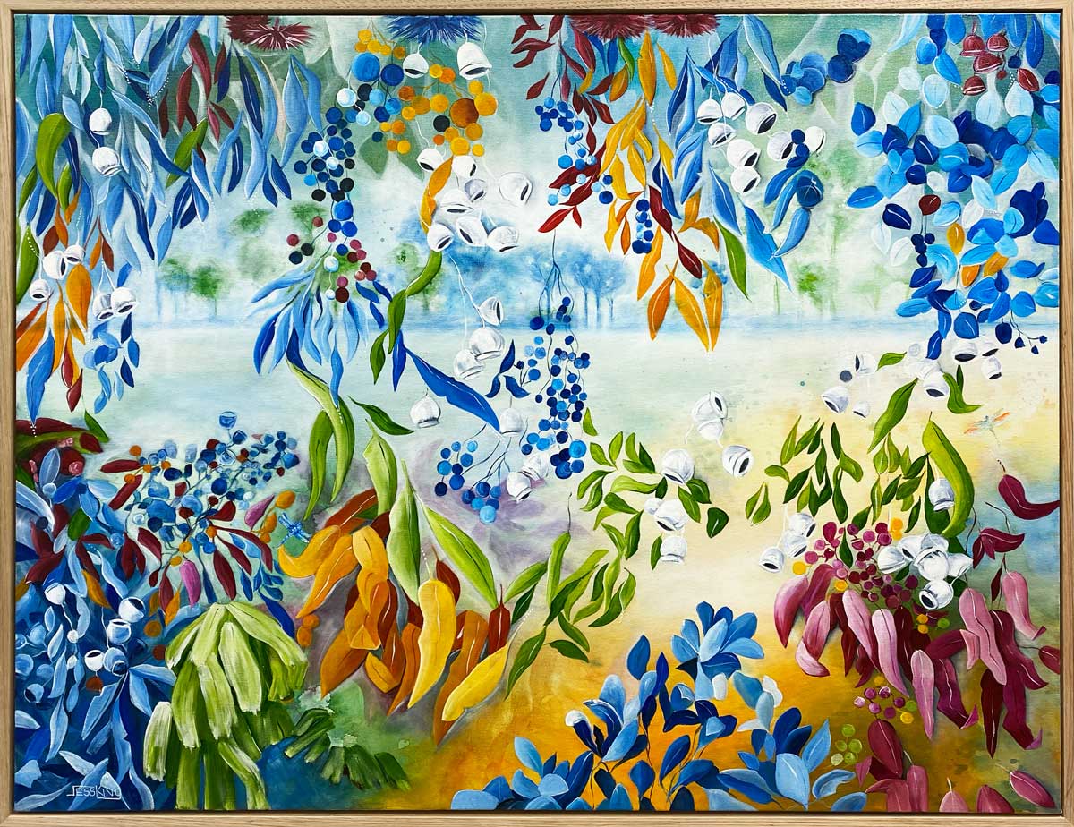 Nature’s Veil by Jess King – Walking through the Australian bush is always full of colour and plant life. My rich intense colour palette really captures the essence of Australia in all seasons. If you are hiking, walking or heading to the beach there will always be magnificent nature around to captivate you. My idea is to gather them together in one space for you to be drawn to constantly.