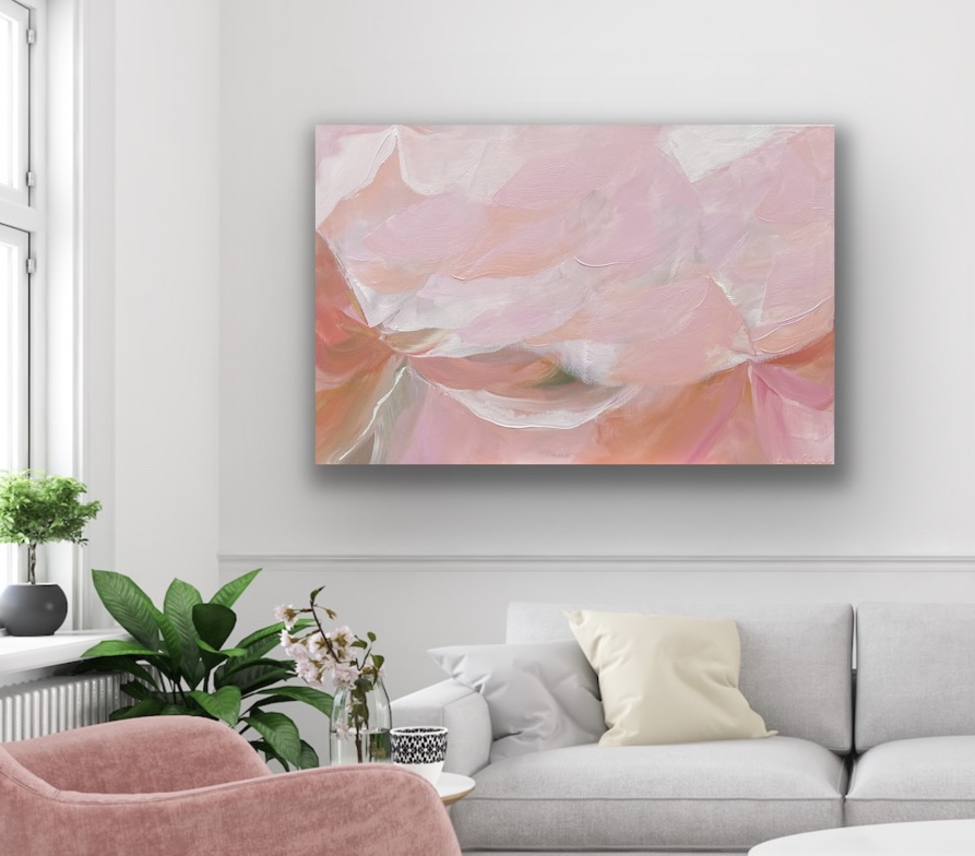 Soft and warm colours bring happiness into any home! This piece is filled with lovely shades of dusty pink and warm corals for a modern touch.