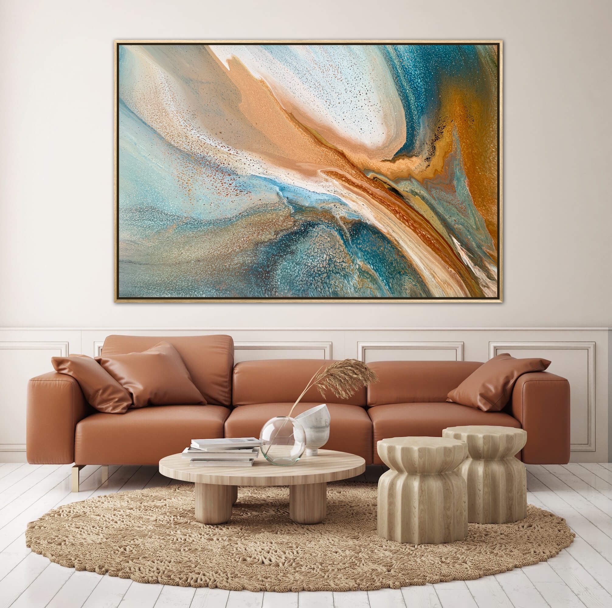 ‘In situ’ photos have been included to help with visualisation of the artwork in your home. In situ photos provided were created using the ArtStage app and may not be perfectly to scale. This being said, every effort has been made to represent the size of the art accurately but please read the dimensions of the artwork to ensure it fits your space perfectly. Where provided, photos of framed art are for illustrative purposes only.