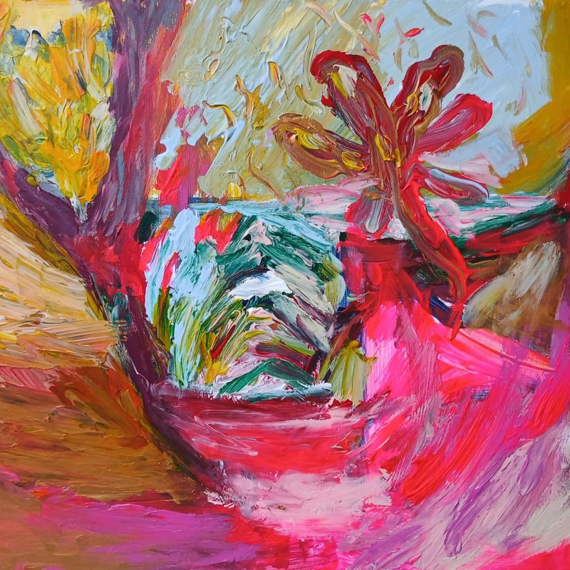 Abstract original acrylic, ink on stretched canvas, gloss finish ready to hang 30x40cm