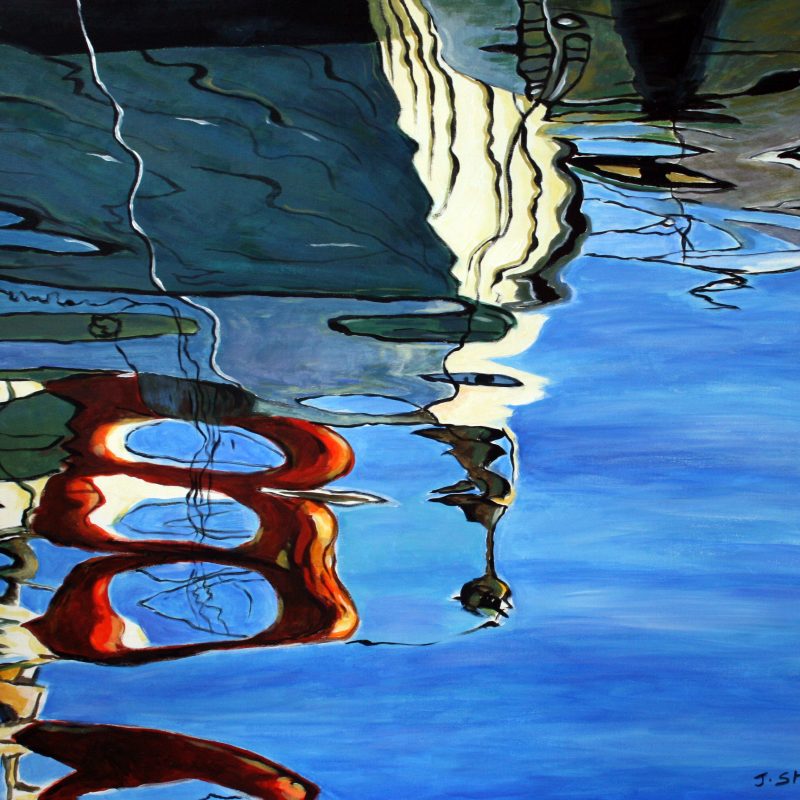 I’ve used a palette knife and oil paint for the reeds to allow that twist and turn and sway in the way they would in nature.