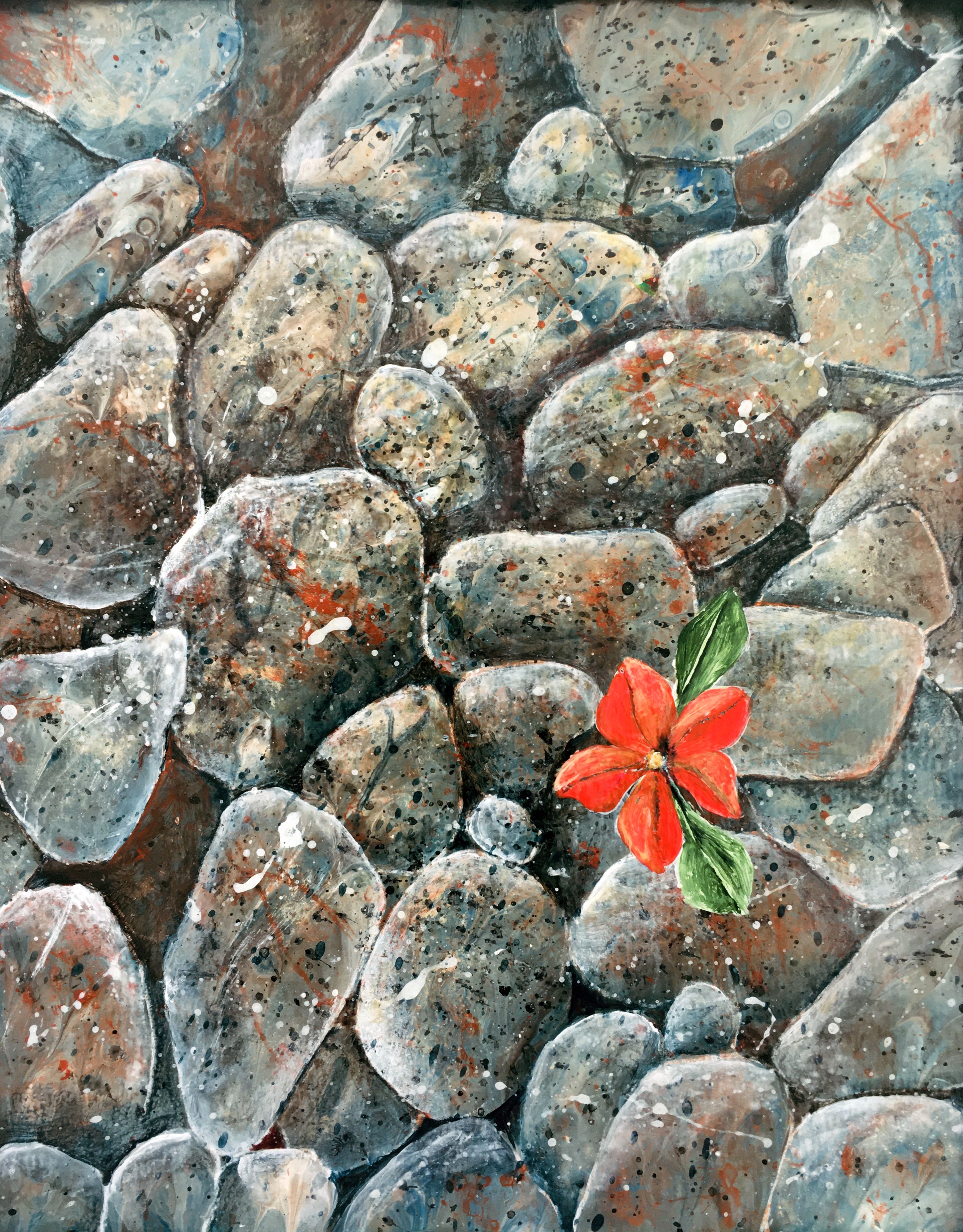 The natural textures of pebbles and leaves have always fascinated me and forever I am trying to re-create them in my paintings They are not only interesting for their shape, texture and patterns but also what they represent for me and many others. Always looking for the special and different pebble, I collected them from every corner of the world and created my own personal pebble world in my backyard.