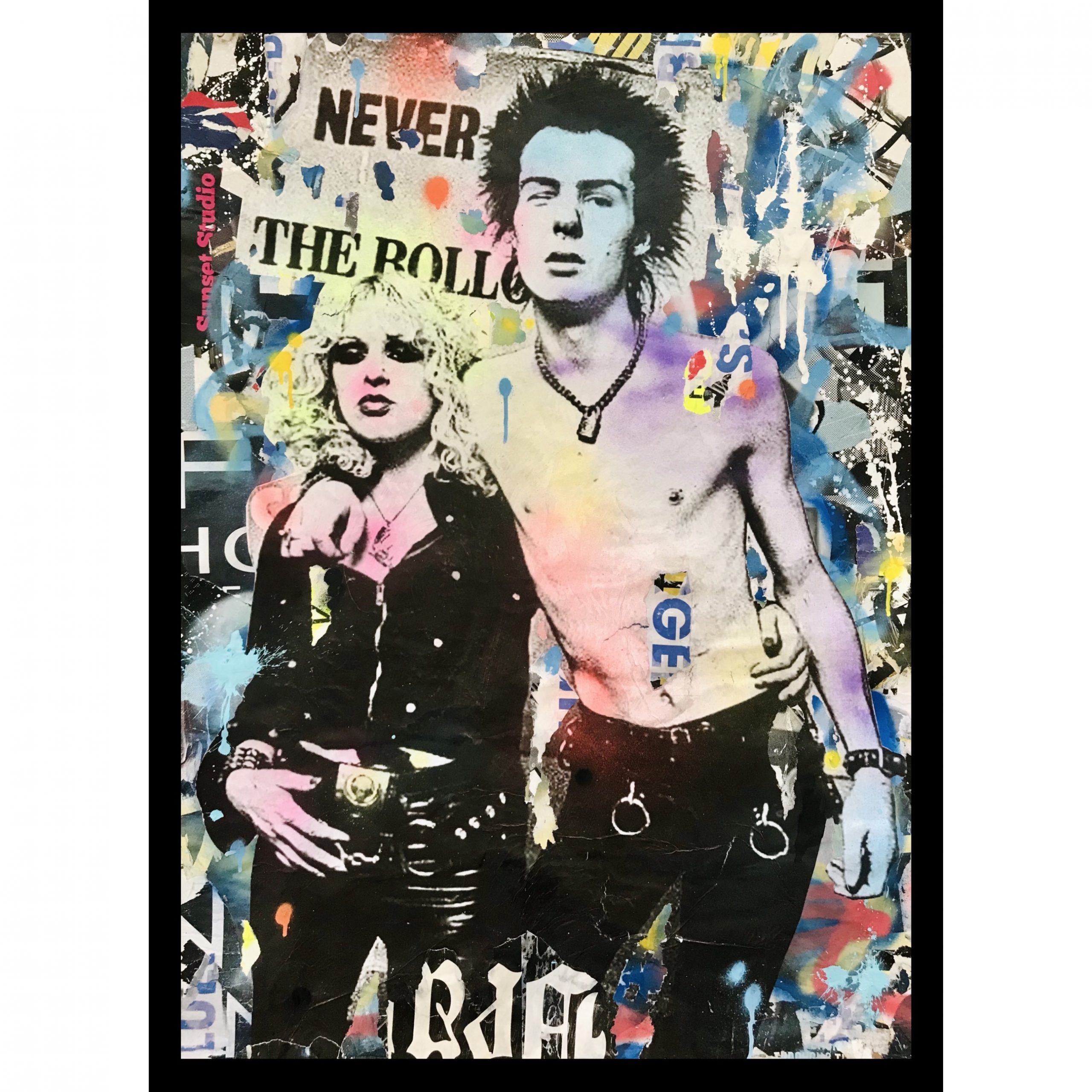 “Then the main Image of Punk Icons Sid & Nancy was then overlaid and given a rustic appearance with further Paint and Paper.”