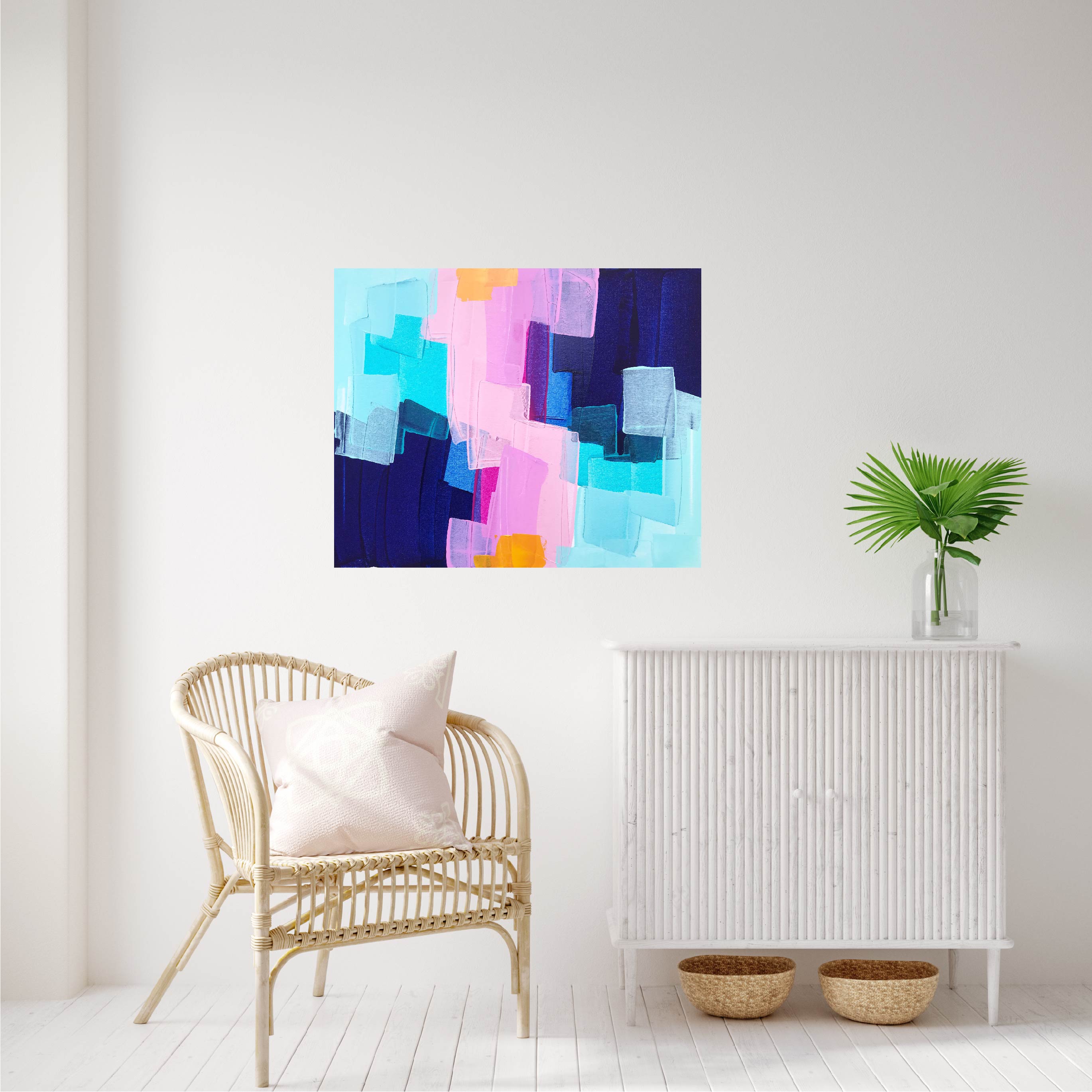 Original abstract acrylic artwork. Artwork sides are painted white and it comes with a wire across the back, ready to hang on the wall.