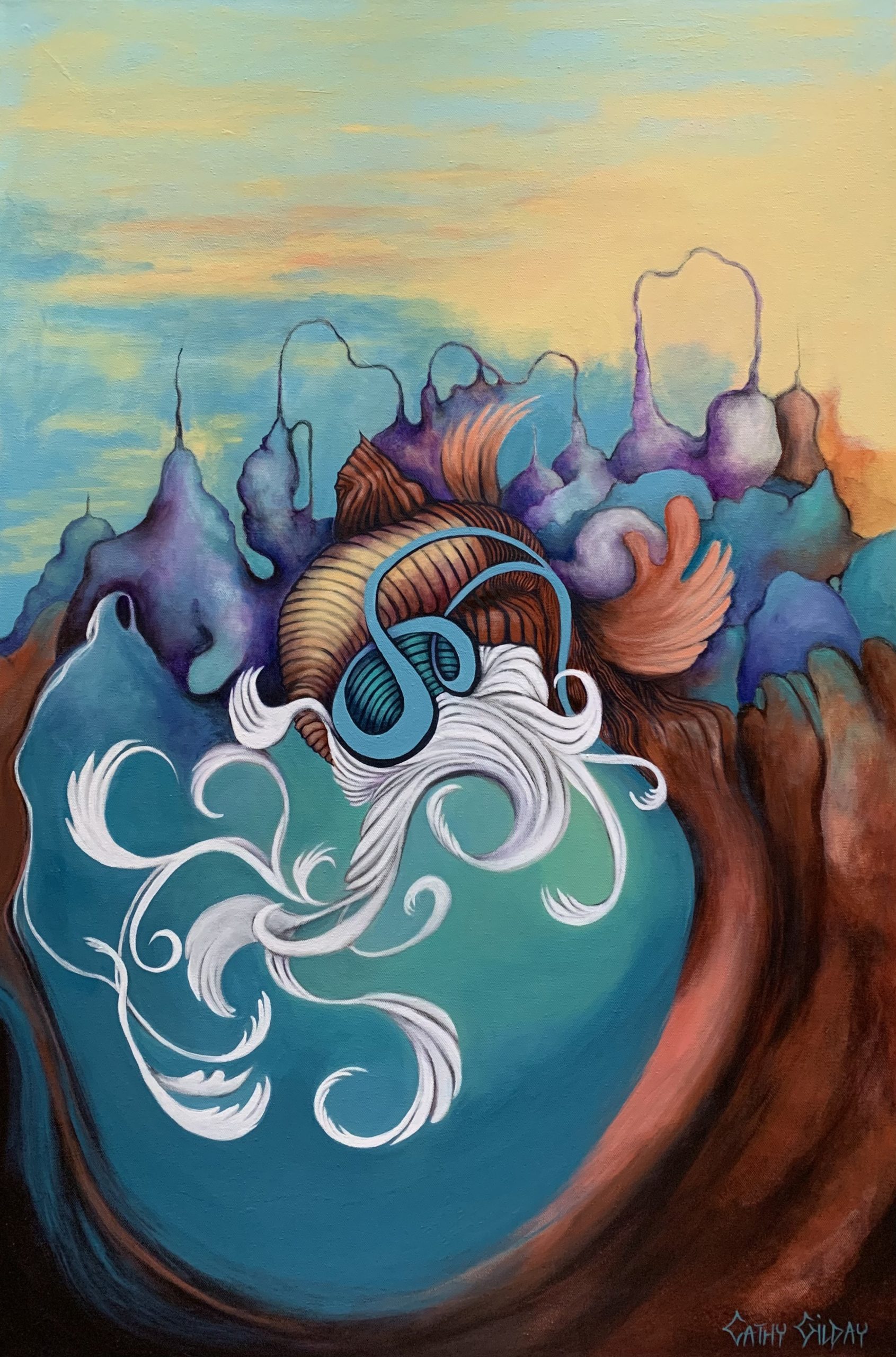 The inspiration behind this artwork is the notion that we are all on our own journey and it could be as fantastical as our imagination will allow. I worked on this fantasy dreamscape for weeks, allowing it to eventuate, without limiting myself to time or a pre conceived outcome. Sides painted, sealed with 2 coats of UV protective varnish.