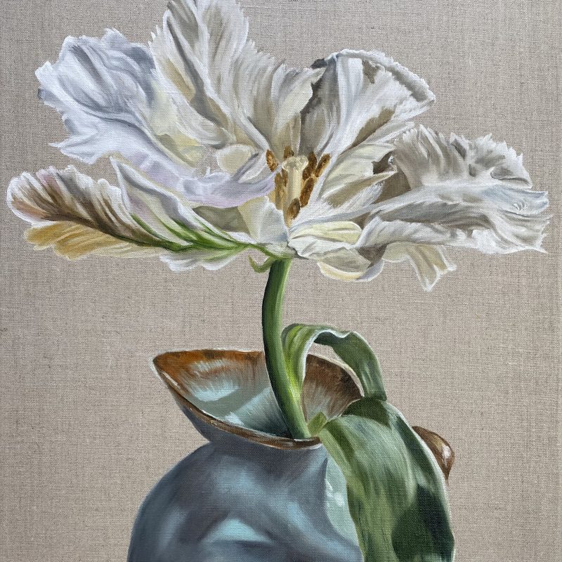 Quality artist oil paint on A4 canvas paper in a black gallery A3 frame.