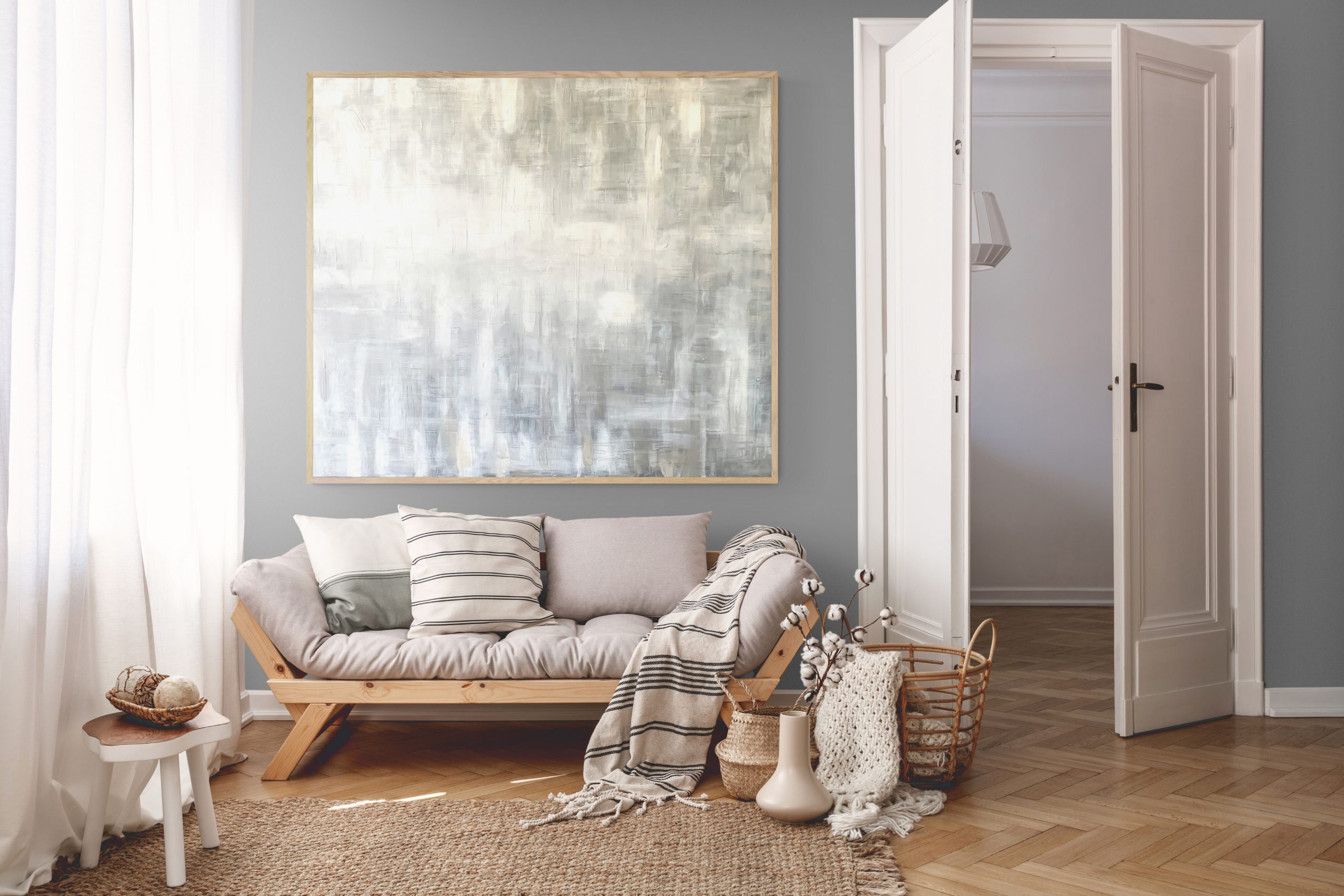 Made by Laurae with Australian materials. Ready to hang complete with natural wooden frame.