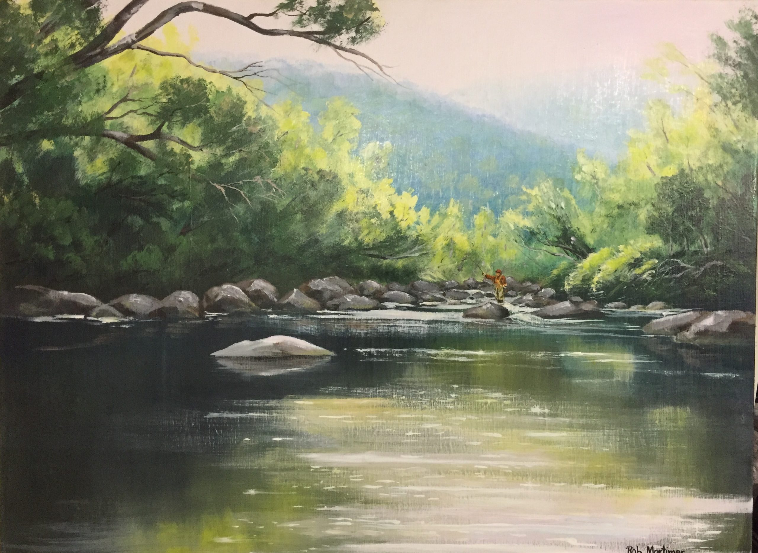 A nice day for a bit of fishing by Robert Mortimer. Wire and hooks. Protective clear coats. Edges painted.