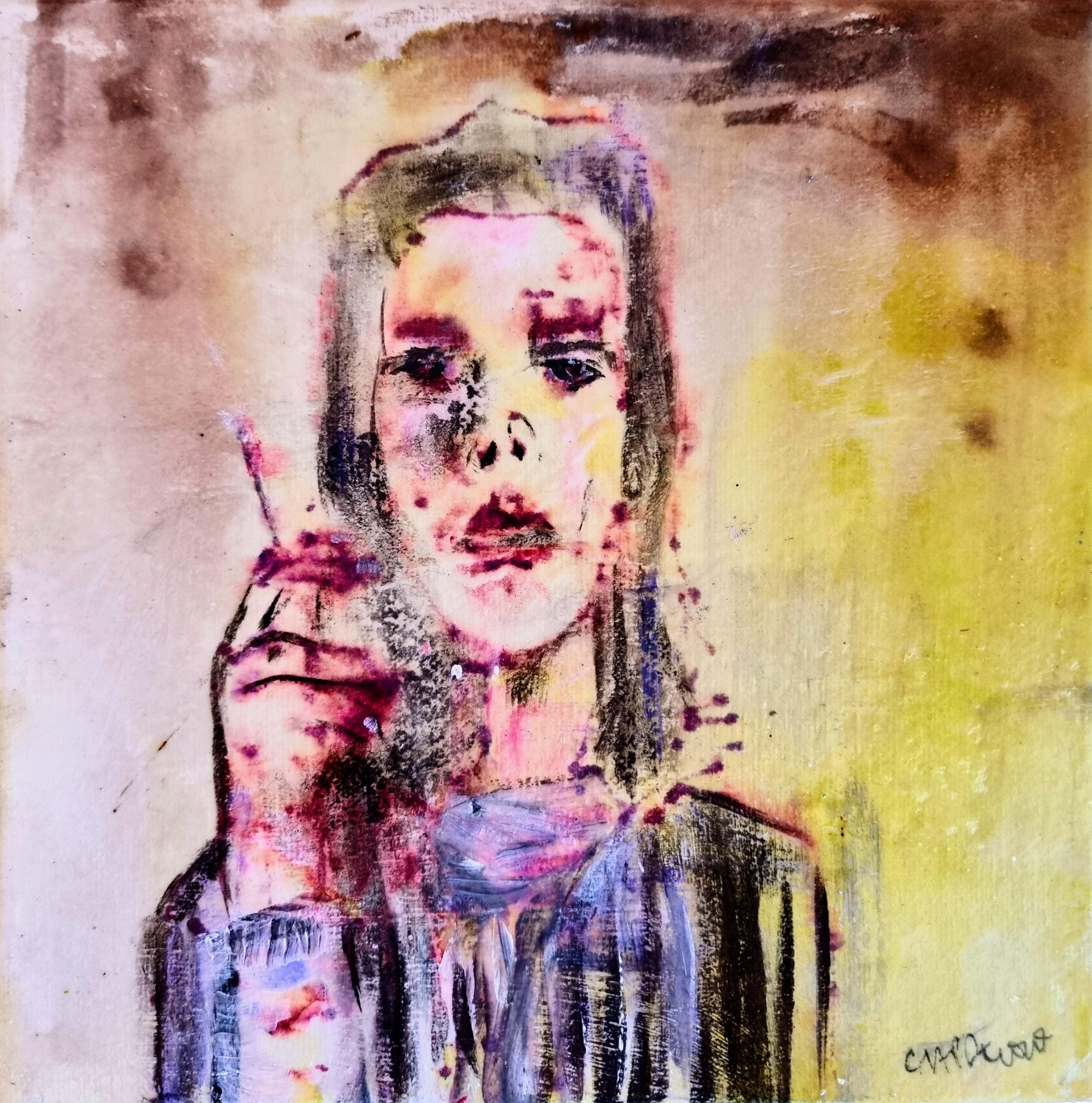 Original mixed media painting Japanese rice paper on canvas for texture and a mix of inks, acrylics