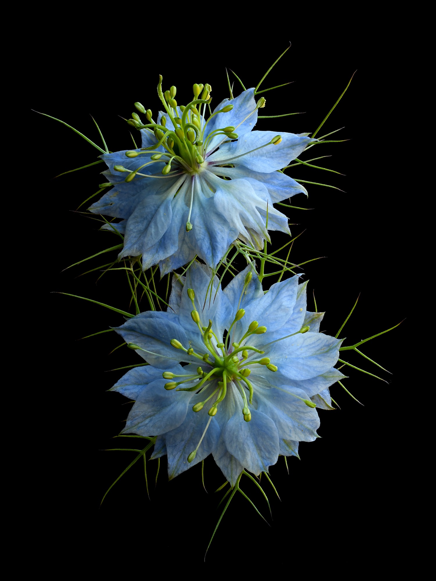 These tiny blue Love in a Mist flowers evoke old world charm and whimsy. No larger than a 10 cent piece, they’re rich in detail and beauty.