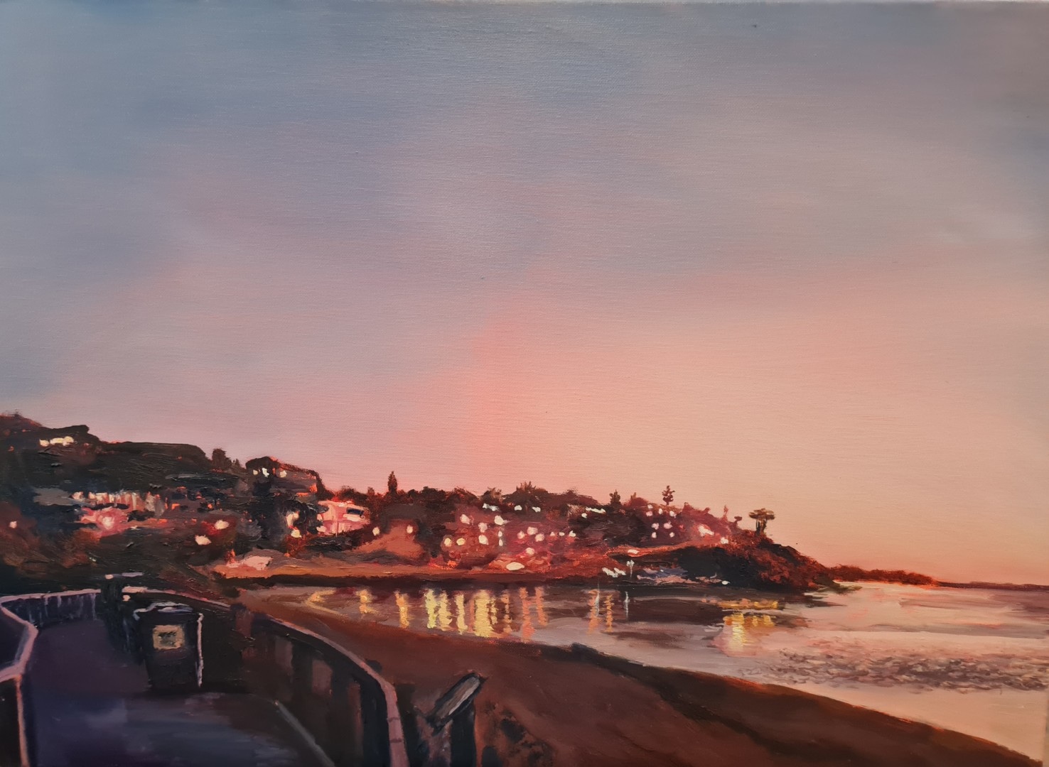 This piece draws inspiration from the Impressionist masters who celebrated light and atmosphere. I’ve always admired the way Monet captured the interplay of light on water, and Turner’s ability to bring a dreamlike mood to his coastal works. In this painting, I wanted to channel those influences to focus on mood and the ephemeral beauty of twilight, creating a piece that feels both serene and timeless..